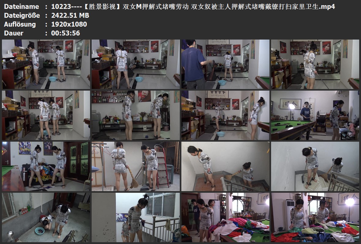【胜景影视】双女M押解式堵嘴劳动 双女奴被主人押解式堵嘴戴镣打扫家里卫生