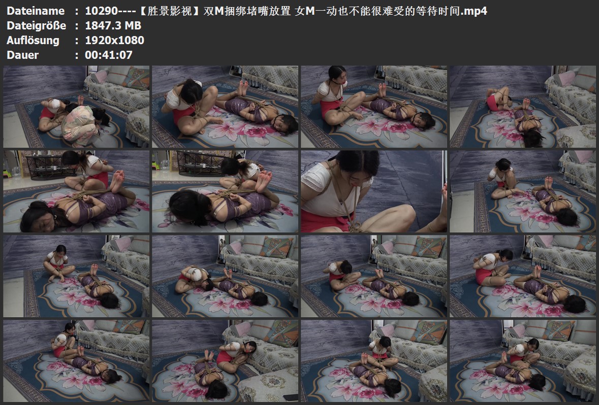 【胜景影视】双M捆绑堵嘴放置 女M一动也不能很难受的等待时间