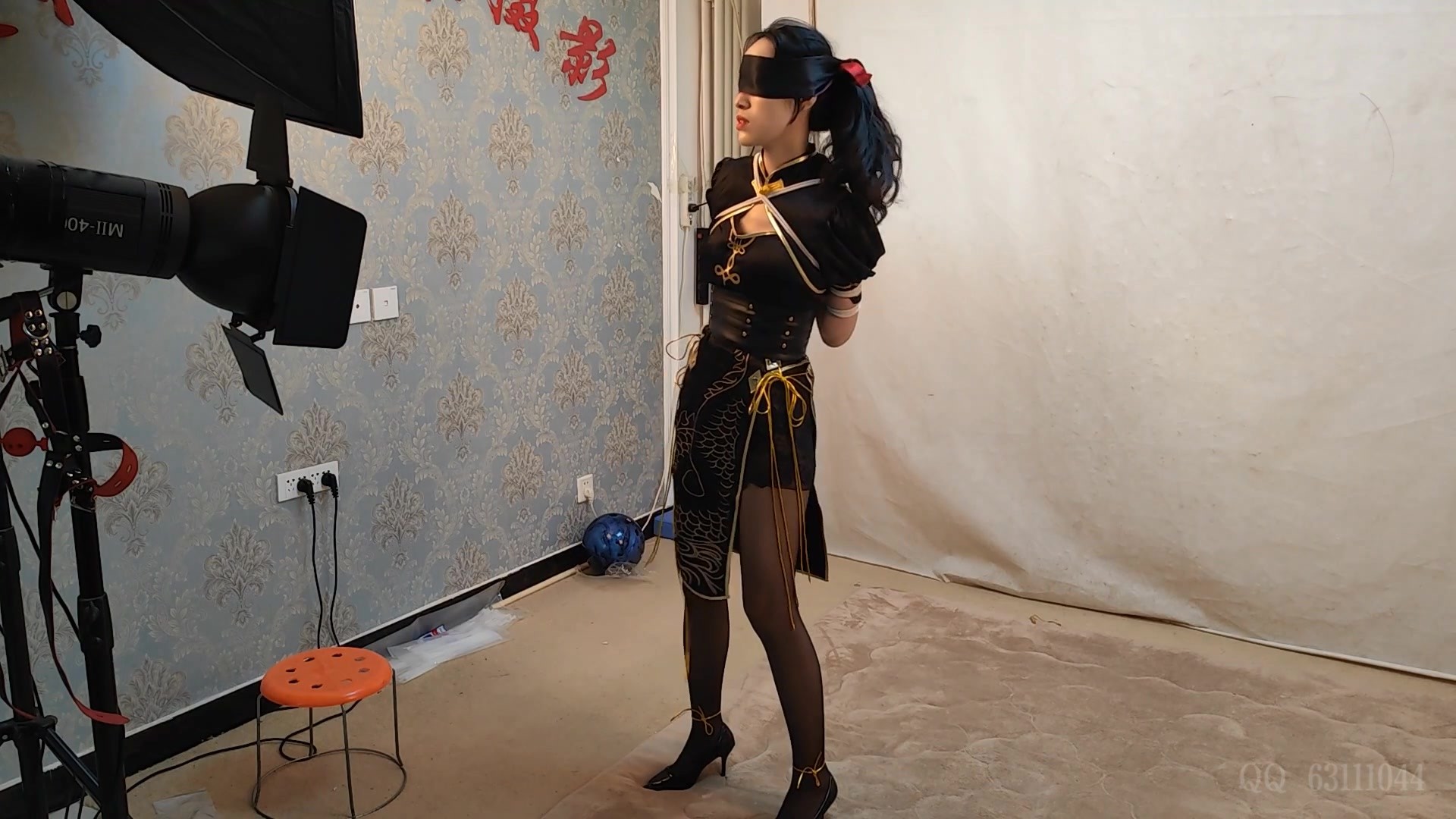 【束缘阁】文慧白衬衣皮裙 柱子全身固定