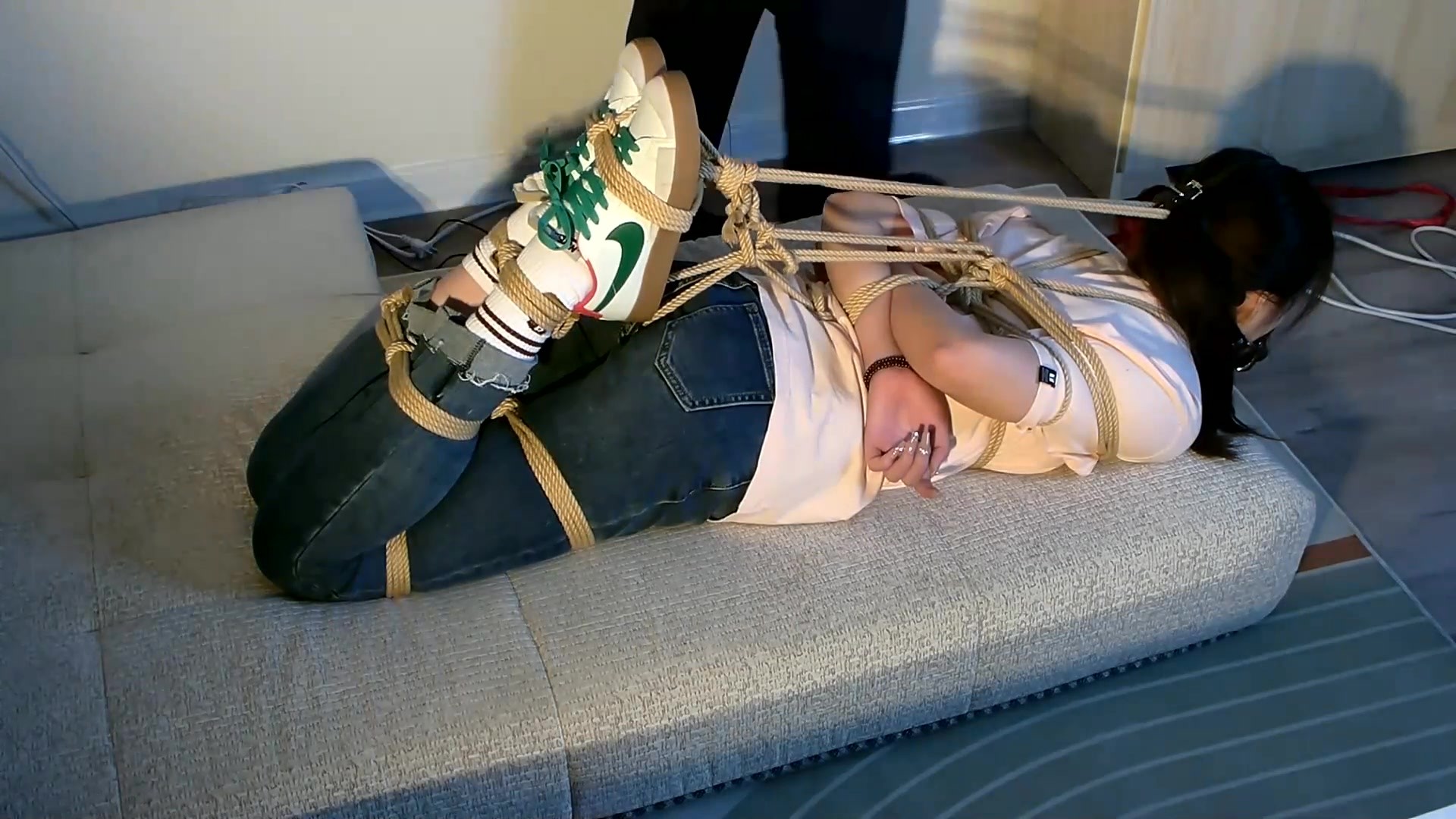 【吴越】盼盼二拍第二季,大床上的坐缚与股绳驷马,TK挑逗、挣扎、10CM一字带凉高、赤裸美足各种扭动特写