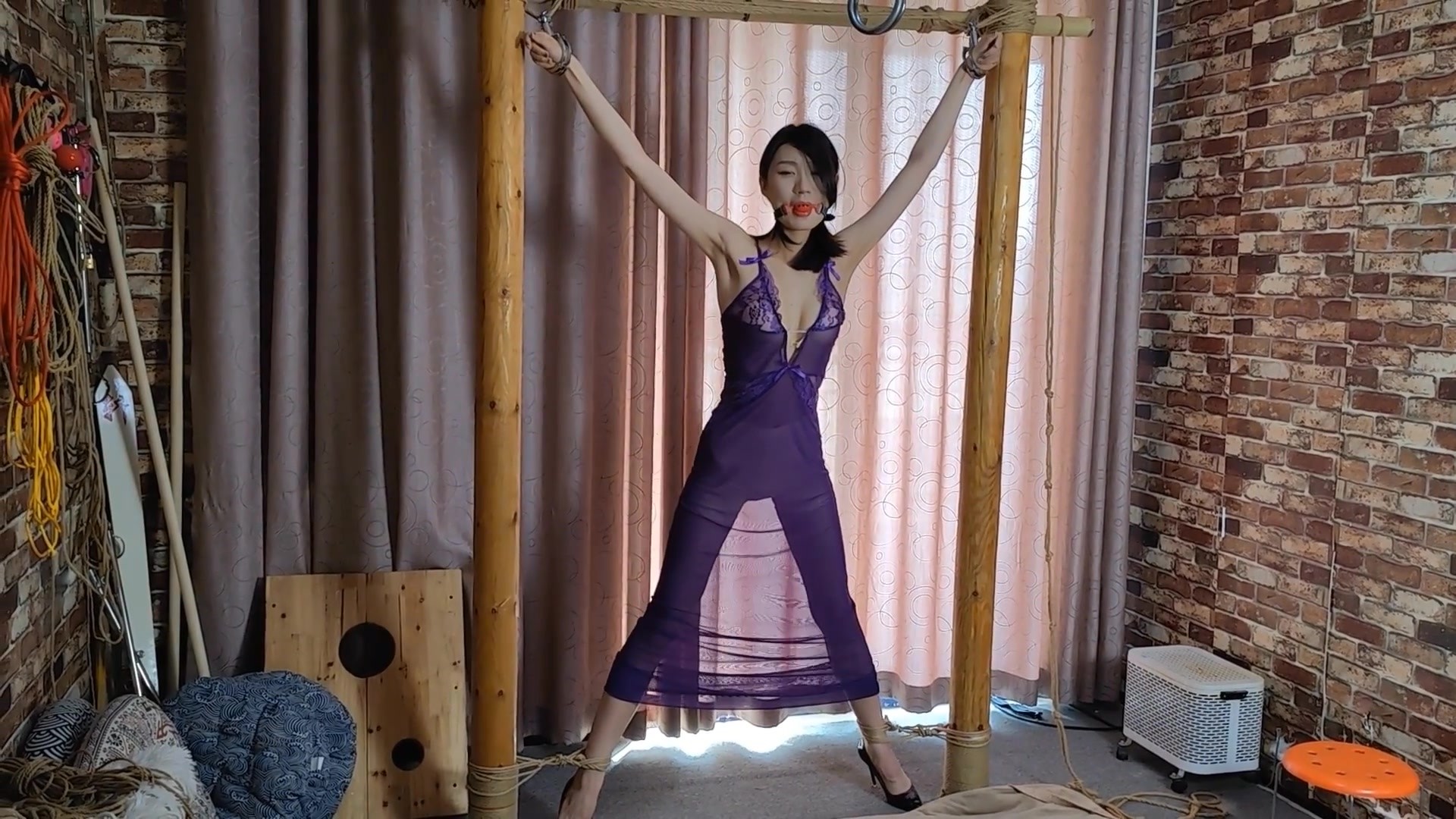 【束缘阁】文慧白衬衣皮裙 柱子全身固定