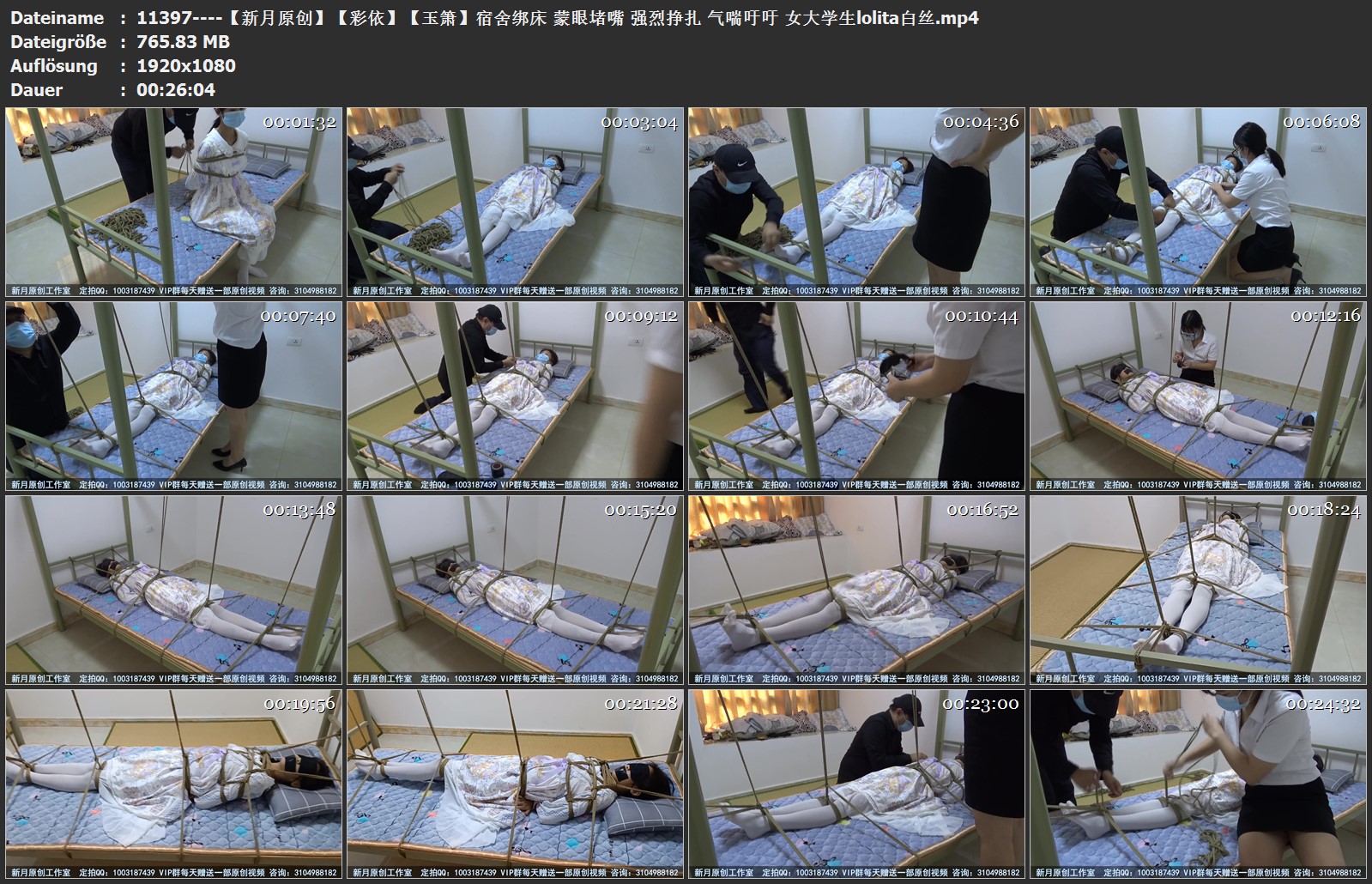【新月原创】【彩依】【玉箫】宿舍绑床 蒙眼堵嘴 强烈挣扎 气喘吁吁 女大学生lolita白丝