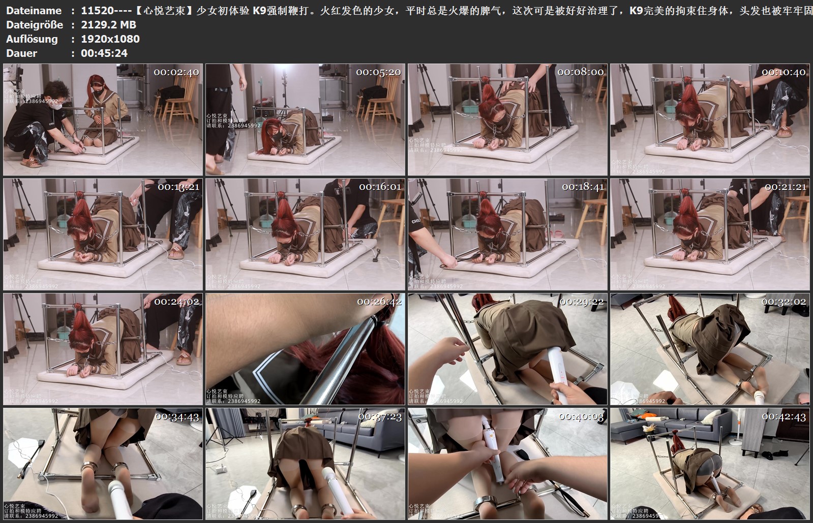 【心悦艺束】少女初体验 K9强制鞭打。火红发色的少女,平时总是火爆的脾气,这次可是被好好治理了,K9完美的拘束住身体,头发也被牢牢固定,只能默默承受主人的鞭打和棒棒的刺激