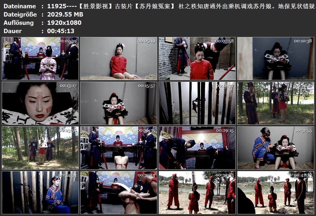 【胜景影视】古装片【苏丹娘冤案】 杜之秩知唐通外出乘机调戏苏丹娘。地保见状错疑二人有染想从中敲诈,苏丹娘怒责之,地保恼羞成怒,将二人扭至县衙,诬陷苏丹娘因奸谋夫