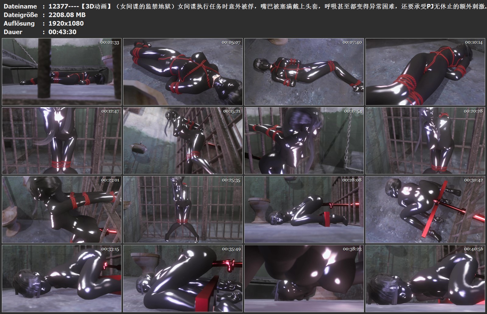 【3D动画】(女间谍的监禁地狱)女间谍执行任务时意外被俘,嘴巴被塞满戴上头套,呼吸甚至都变得异常困难,还要承受PJ无休止的额外刺激