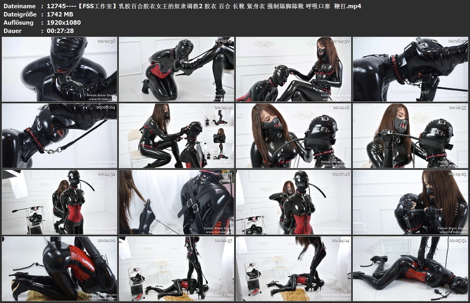 【FSS工作室】乳胶百合胶衣女王的奴隶调教2 胶衣 百合 长靴 紧身衣 强制舔脚舔靴 呼吸口塞 鞭打