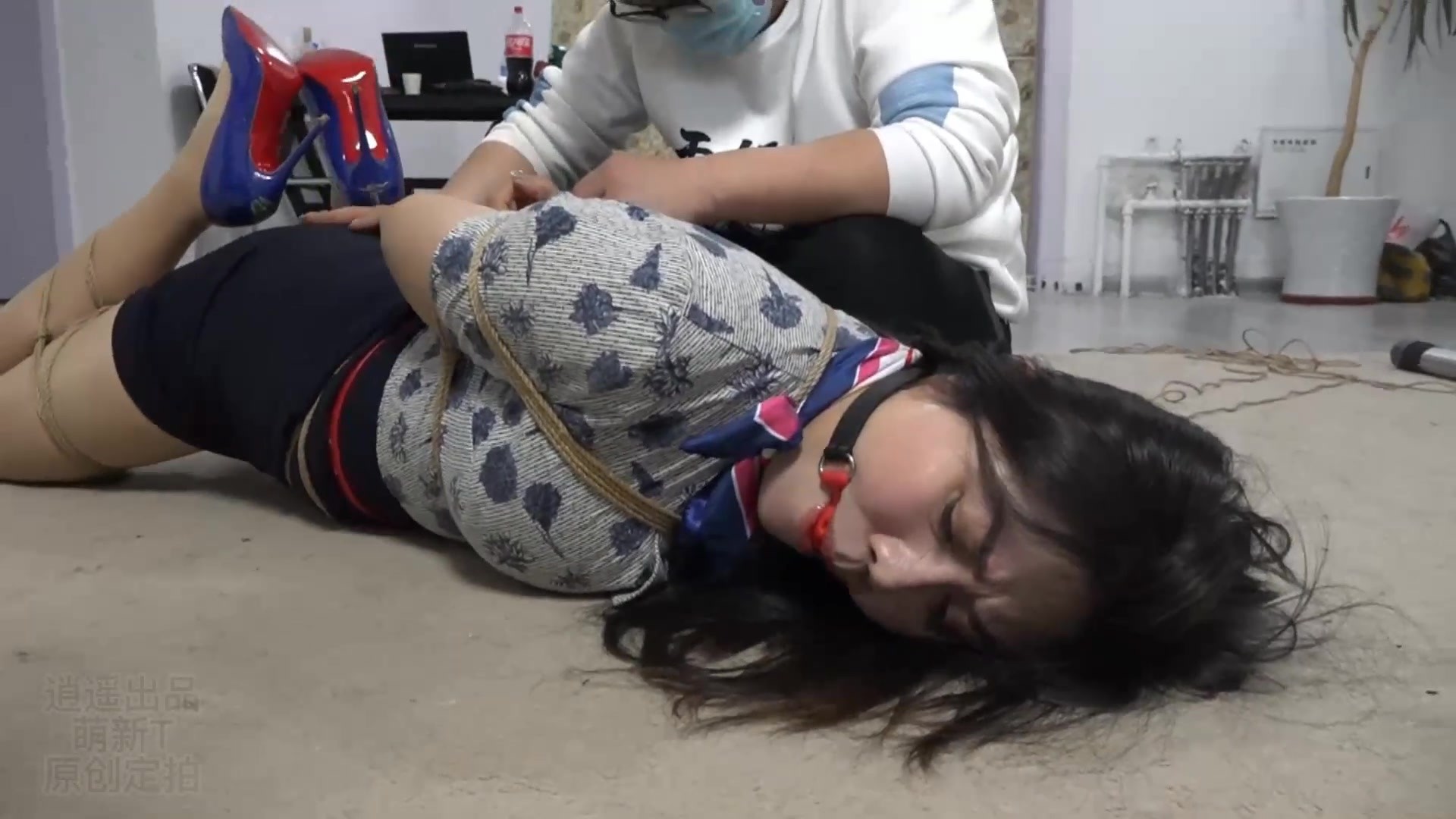 【逍遥】[楼上的高跟鞋声- 上]楼上的美女每天都穿着高跟鞋走来走去,惹怒了楼下的美女,随后2人在理论中打斗起来。楼下美女不敌,被丝袜捆绑全包,并被逼着穿上高跟鞋,被逼着喜欢高...