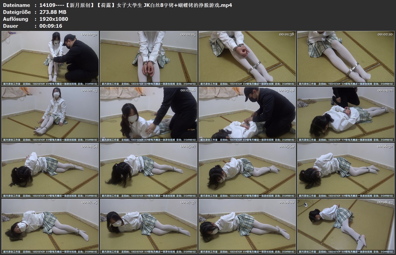 【新月原创】【荷露】女子大学生 JK白丝8字铐+蝴蝶铐的挣脱游戏
