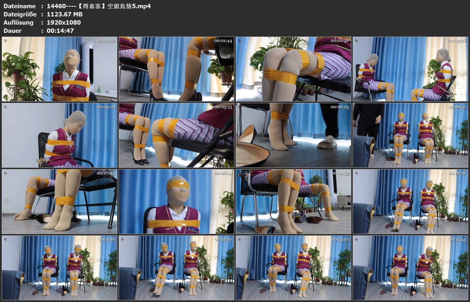 空姐危情5-两名身穿制服的空姐被歹徒用胶带捆绑在椅子上,嘴巴被封,面部被头套包裹。几分钟后,歹徒又用胶带将两人的眼睛封住,脱下两人的鞋子,放置了一颗炸弹。。。