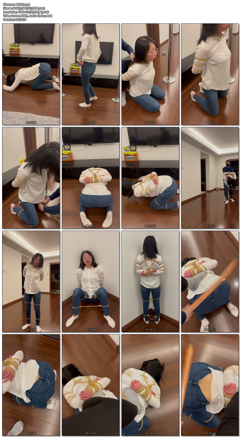 麦子被五花大绑,大腿和小腿分别用一米绳子绑,被插着胳膊走圈,又跪趴在地上,还是两腿分开,打屁股。脚踩着后背。做一次囚犯