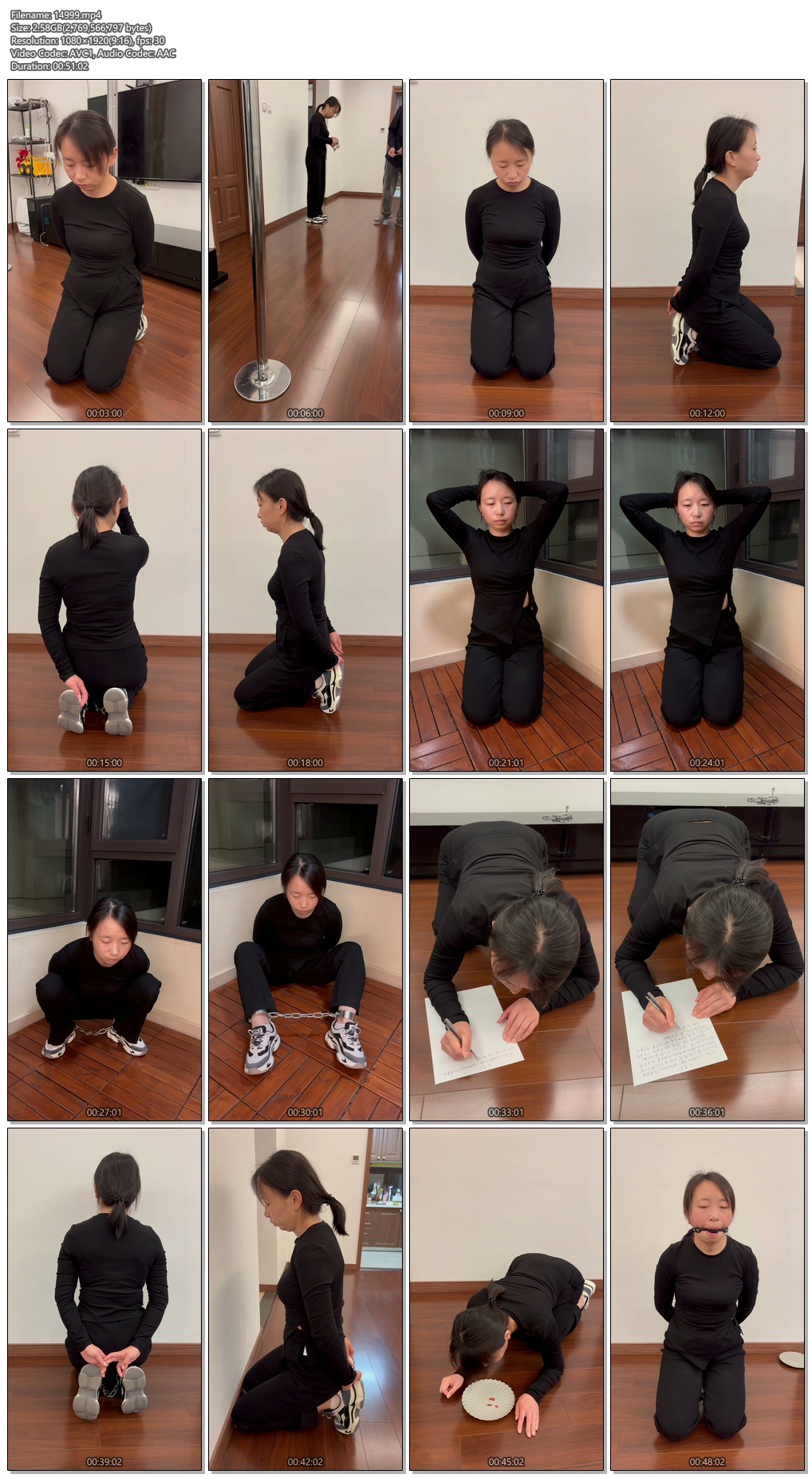 麦子户外双手抱头跪地抓捕,押回客厅柱子跪着反铐,解开押到墙边跪着,戴脚镣,拍照,押到阳台双手抱头跪着,押到客厅审问,押到门口跪着指认现场,押回阳台休息,押到客厅跪着写认罪书画押,跪着到墙边面壁思过,跪着吃东西,(堵嘴)押解到刑场跪着,验明正身执行