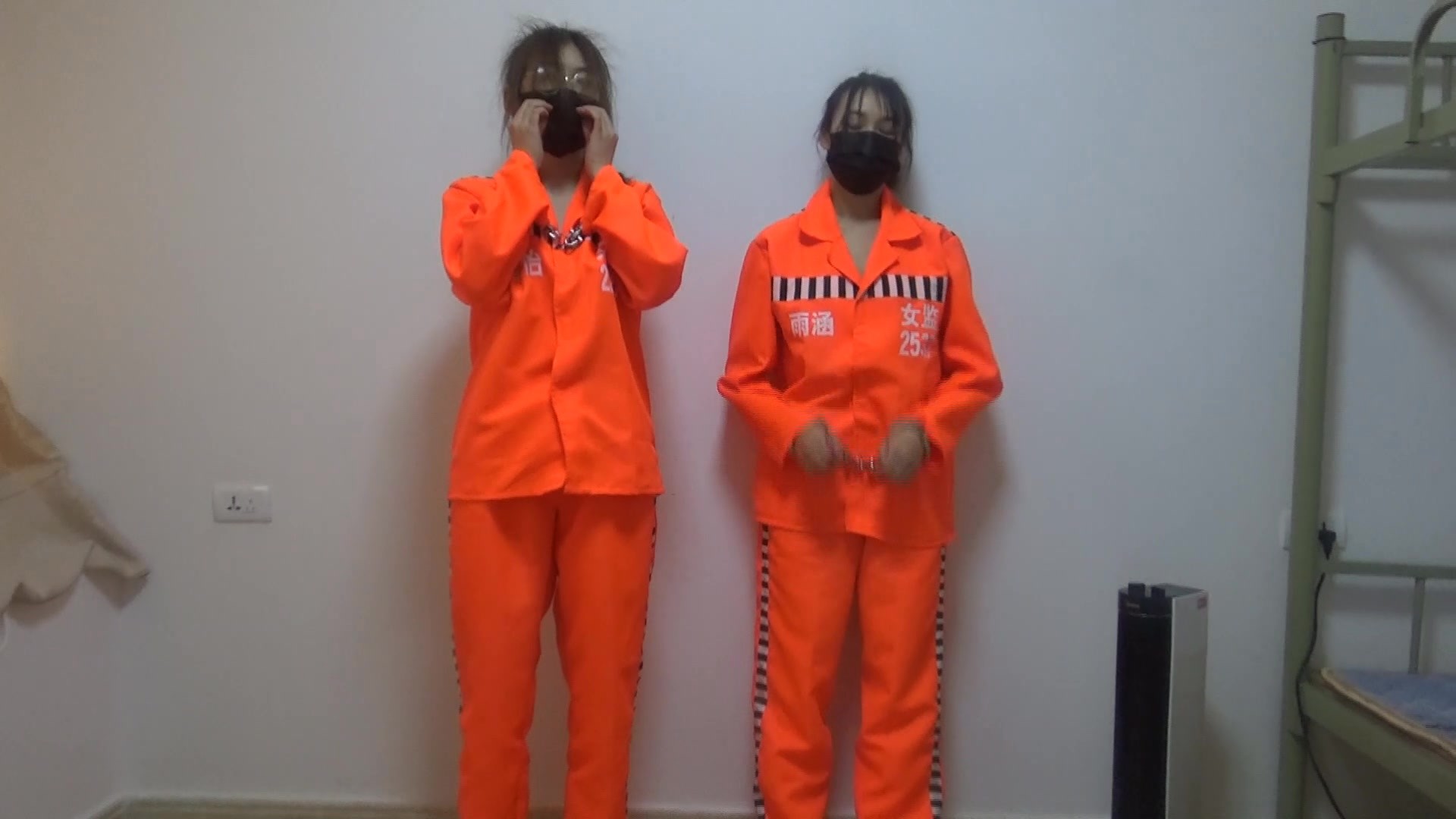 【新月原创】【佳怡】【雨涵】性感妹妹和萌妹子斗殴被戴上手铐脚铐换上黄色囚服进行关押和惩罚