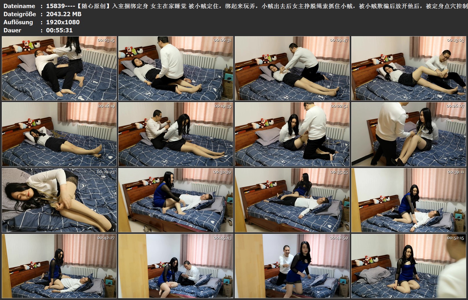 【随心原创】入室捆绑定身 女主在家睡觉 被小贼定住,绑起来玩弄,小贼出去后女主挣脱绳索抓住小贼,被小贼欺骗后放开他后,被定身点穴控制,最后小贼把她扔在床上痛苦不已