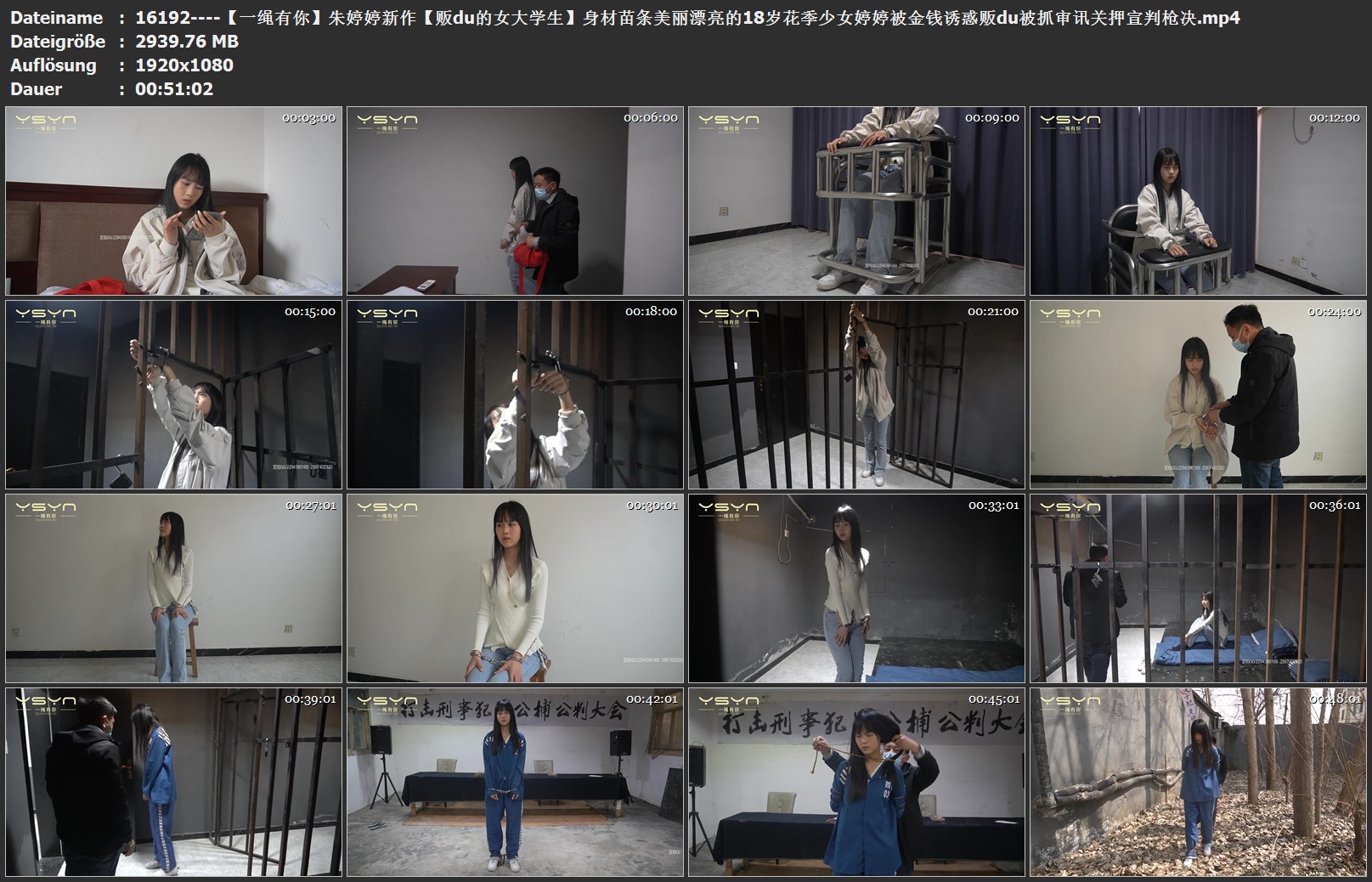 【一绳有你】朱婷婷新作【贩du的女大学生】身材苗条美丽漂亮的18岁花季少女婷婷被金钱诱惑贩du被抓审讯关押宣判枪决