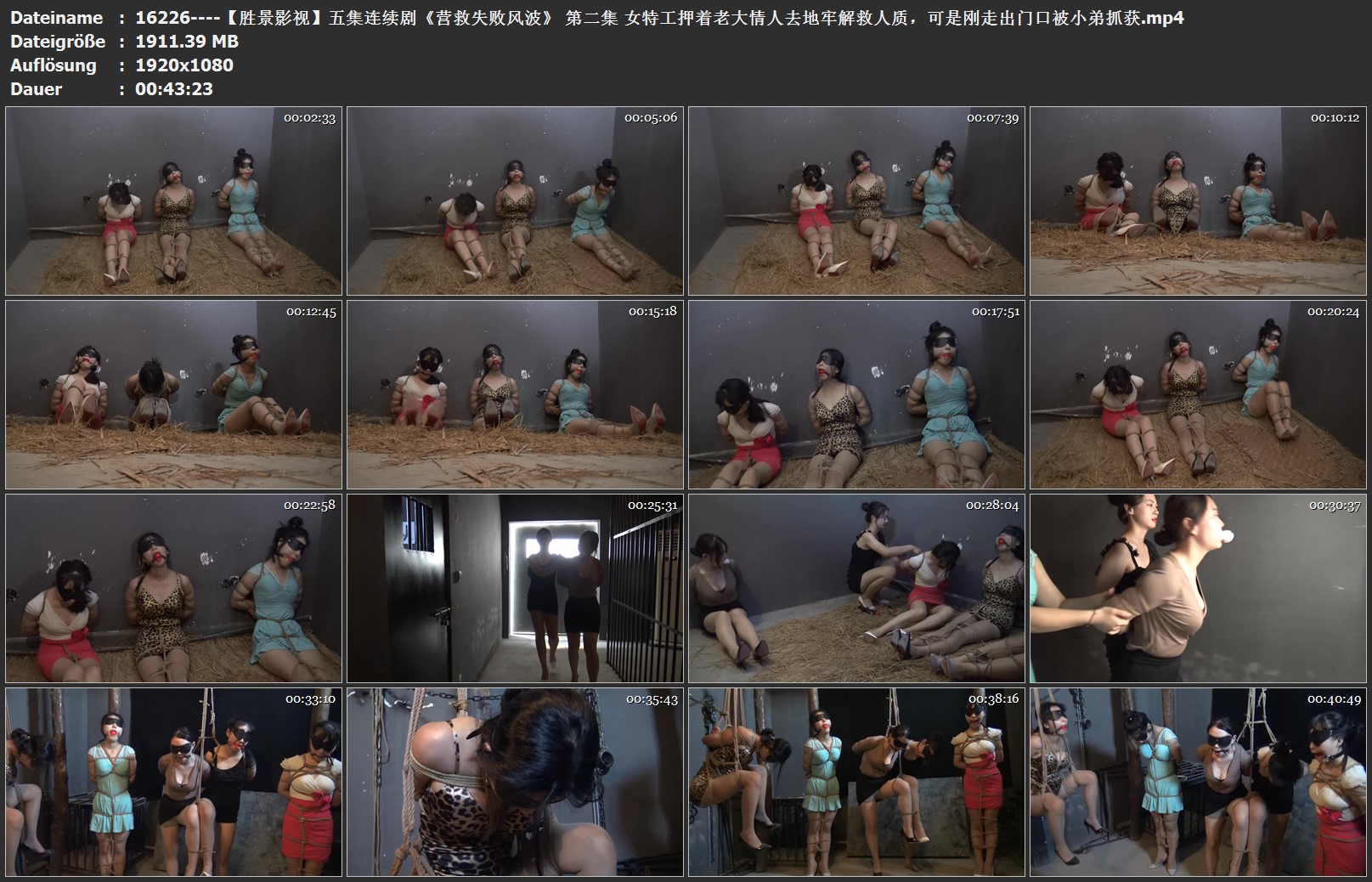 女特工押着老大情人去地牢解救人质,可是刚走出门口被小弟抓获,她们和老大情人一起押进刑讯室,她们都被捆绑,蒙眼,堵嘴,固定在刑讯室,她们结局怎么请欣赏视频