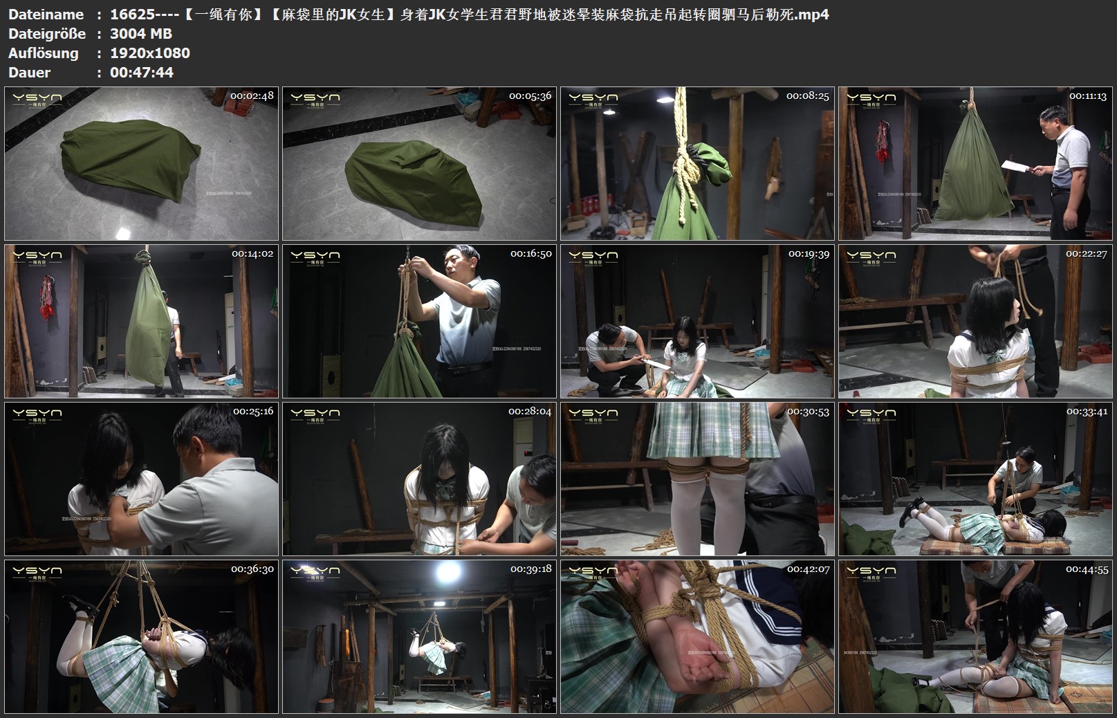 【一绳有你】【麻袋里的JK女生】身着JK女学生君君野地被迷晕装麻袋抗走吊起转圈驷马后勒死