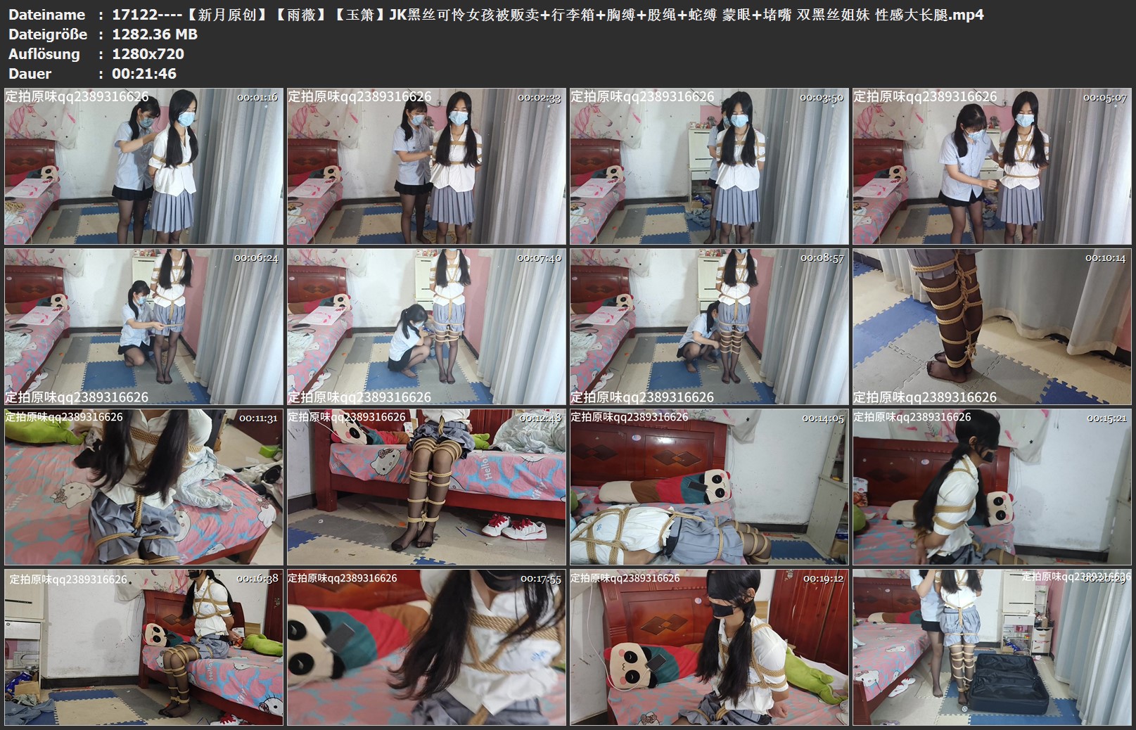 【新月原创】【雨薇】【玉箫】JK黑丝可怜女孩被贩卖+行李箱+胸缚+股绳+蛇缚 蒙眼+堵嘴 双黑丝姐妹 性感大长腿