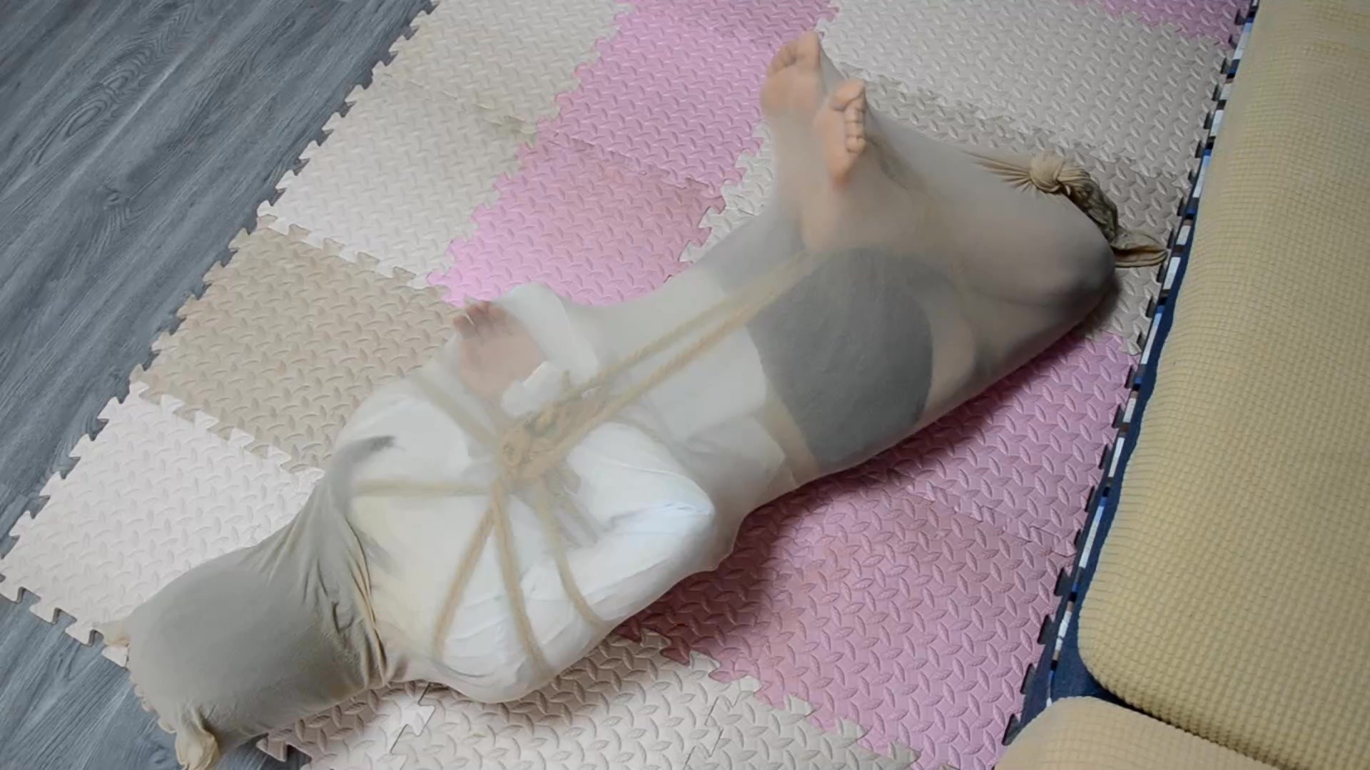 【意之窗原创】【汤圆】真空袋窒息+固定木质刑架+绳子勒B+滴蜡+Z