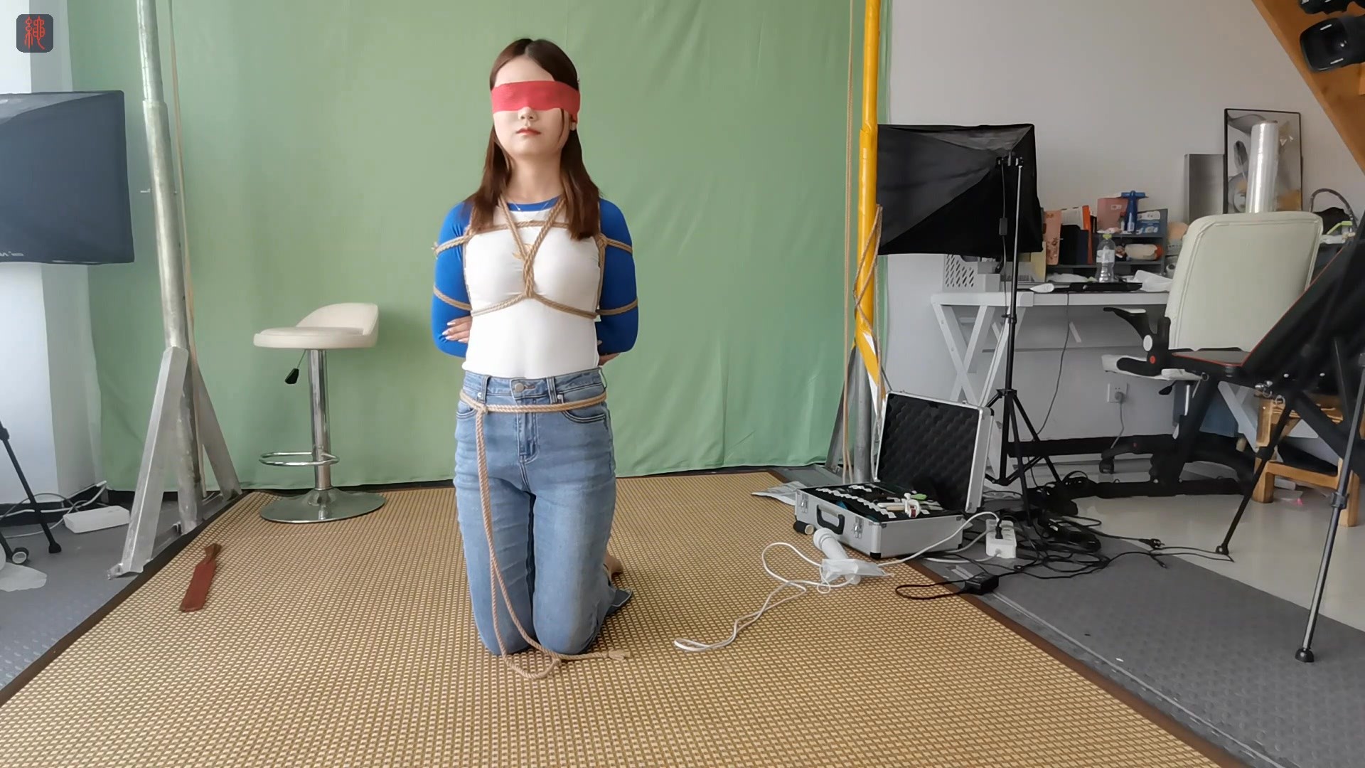 靓丽可爱小九妹,牛仔裤日式跪缚,放置,挣脱实验,虽然绑的不是特别紧,但是我下去接个快递的功夫这丫头就挣开了捆绑,不得不说她确实有点“天赋”(小九妹失恋了,为了安慰她,特地设计了这一组“轻绳艺”作品