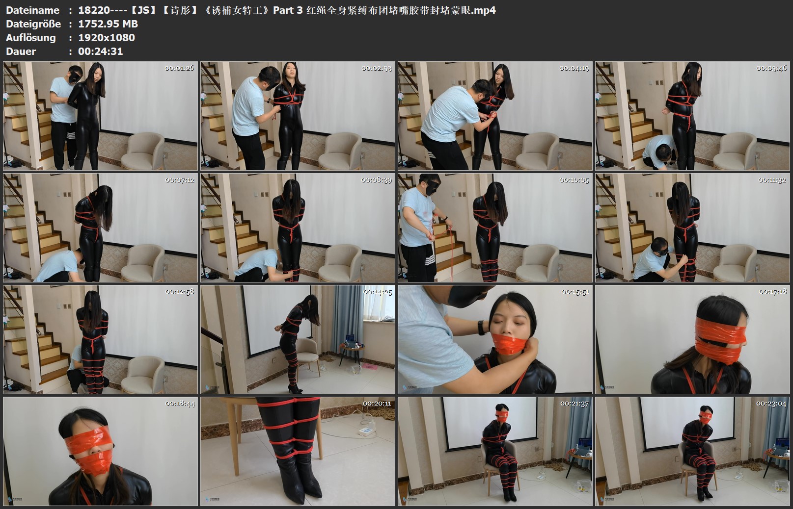 【JS】【诗彤】《诱捕女特工》Part 3 红绳全身紧缚/布团堵嘴/胶带封堵/蒙眼