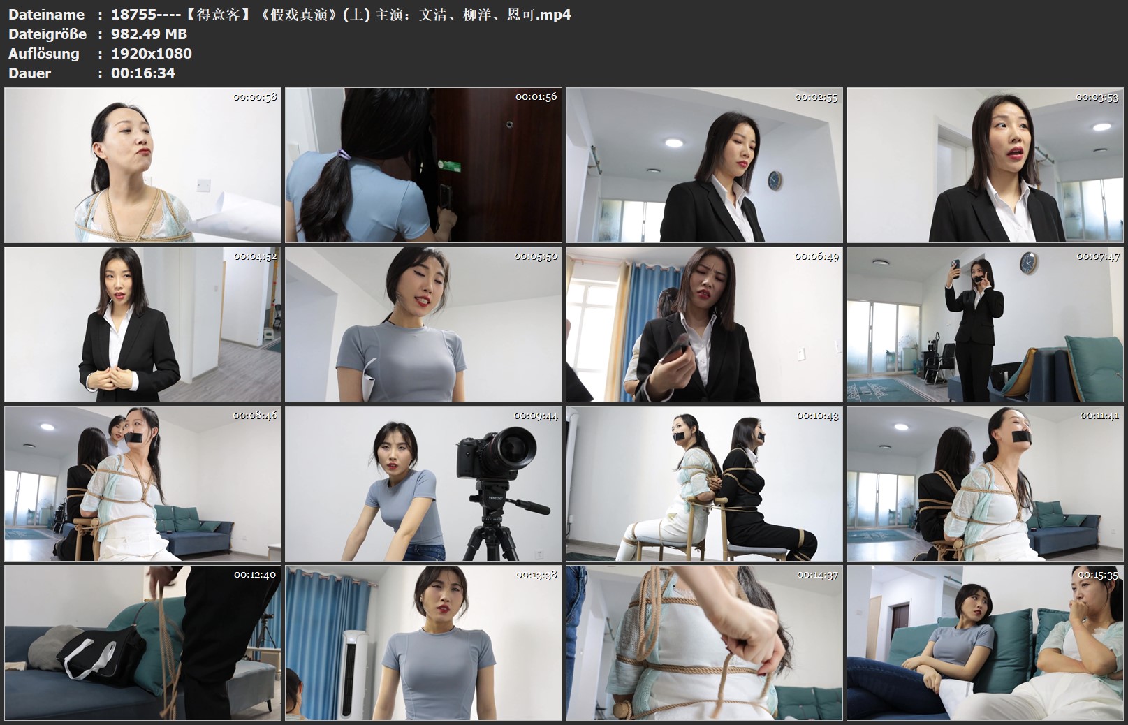 影片重演了捆绑演员好的示范跟不好的示范。3位演员都做得很到位。文清演工作认真的演员,该用力挣扎时挣扎,该用上表情功夫时表现得淋漓尽致。挣扎和”呜”不能从头到尾都一个模样,还要看处境和体会当刻情绪。与其他被绑的人互相合作解困需要一个模样,和匪徒周旋又要用上另一种演法。说不了话、四肢不能动,更考验演员的眼神和表情,别以为一直”呜”下去就算了事。文清这方面做得很好,感觉到她体会剧情的上文下理,绳子解开了,换到另一个镜头时还懂捏一下肩膀手肘交待自己刚刚松绑浑身不舒服的感觉,小小的动作就看出她积累了许多当演员和模特的经验,相当熟练,大胆自由发挥。