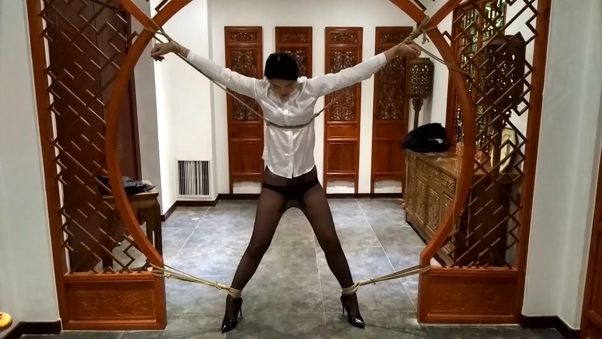 【束缘阁】文慧白衬衣皮裙 柱子全身固定