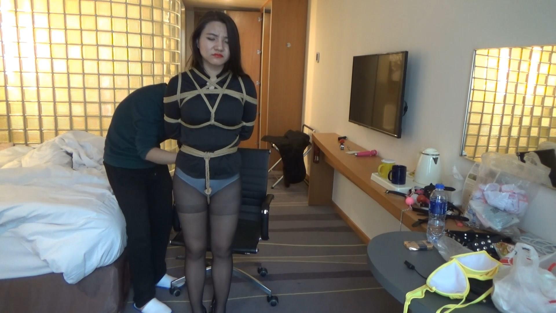 【束缘阁】文慧白衬衣皮裙 柱子全身固定