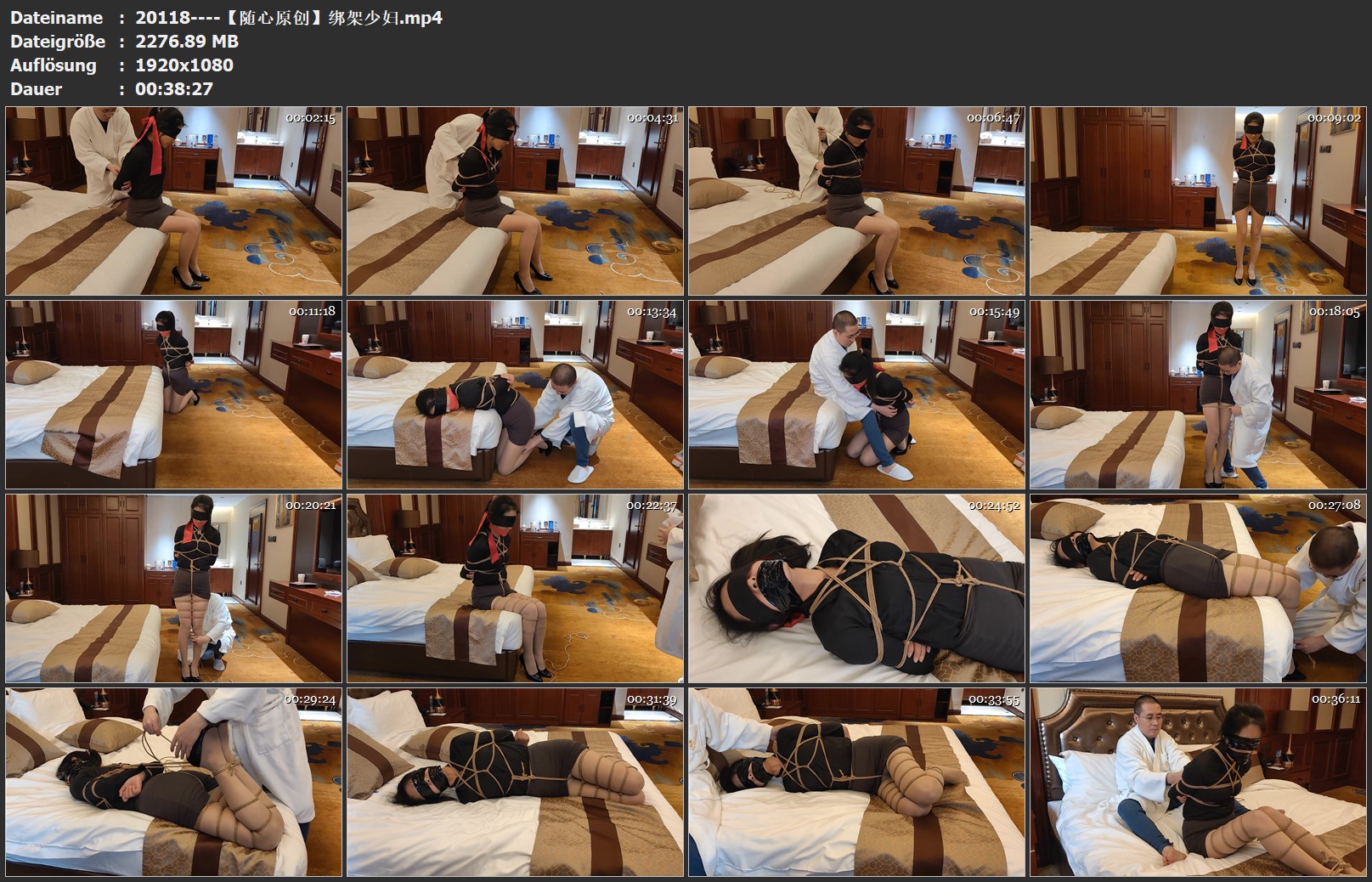 少妇被人诱骗到酒店中,等待她的自然是绑绑绑啦,先红胶带封嘴再白袜堵嘴+封嘴,楚楚可怜挣扎之后是TK惩罚~