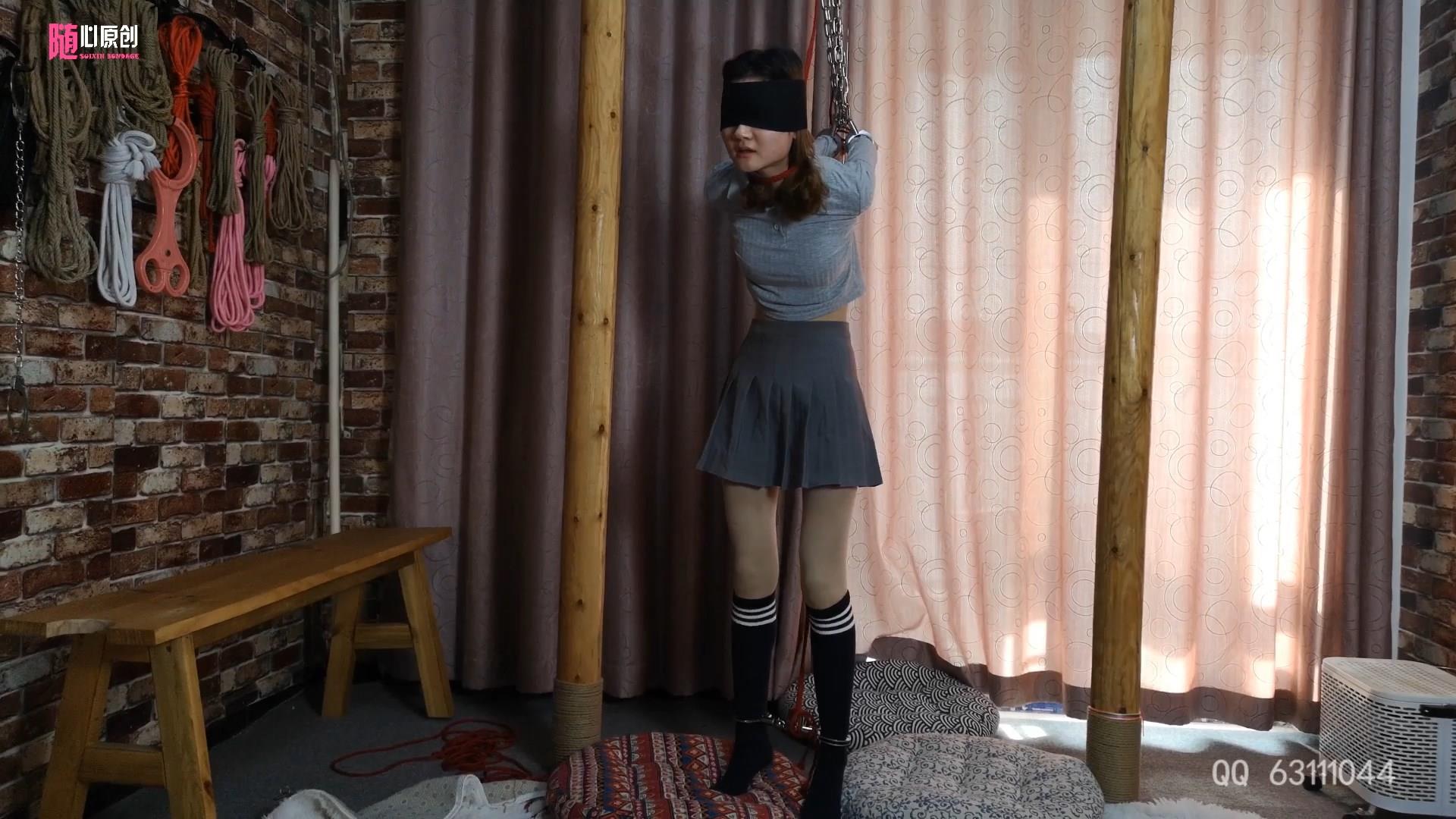 【束缘阁】文慧白衬衣皮裙 柱子全身固定