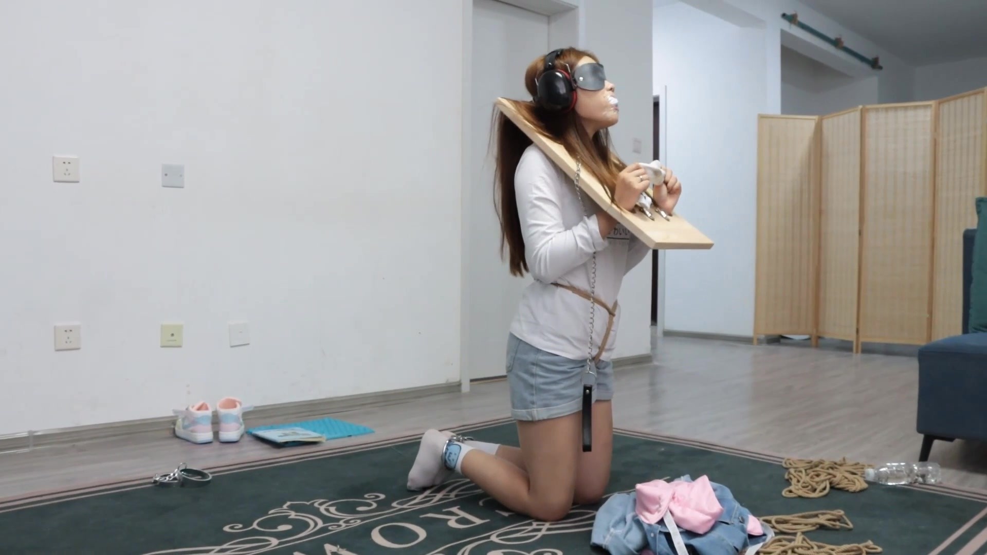 紧接着,代表囚犯身份的木枷被抬了上来,被戴上木枷的犯人更加清楚了自己的处境,她被告知要带着木枷和脚镣进行游街!当然了,嘴里还需要塞着自己的原味棉袜,不仅如此,她必须将另一只原味棉袜的脏袜底用手展示出来。