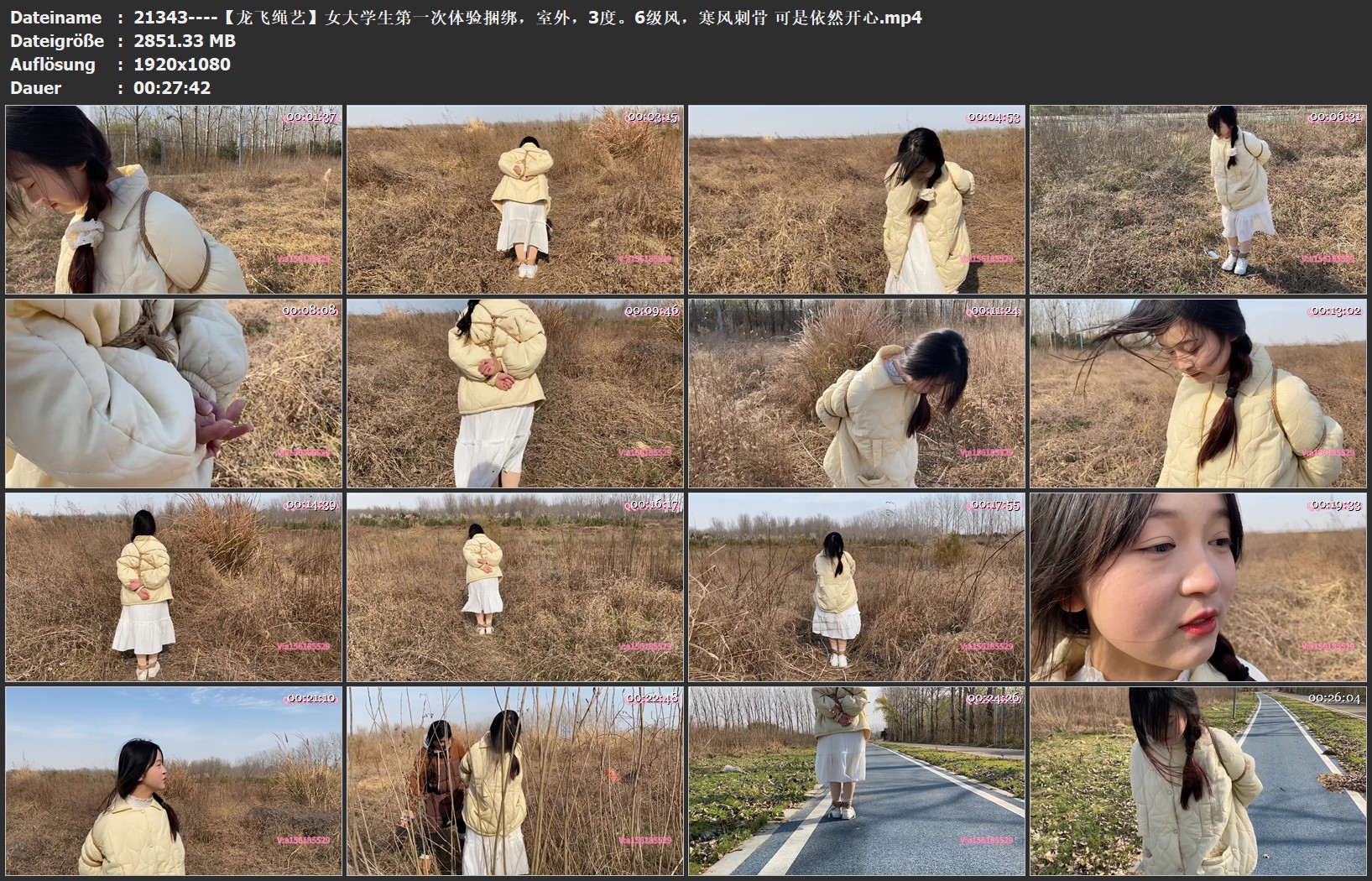 【龙飞绳艺】女大学生第一次体验捆绑,室外,3度。6级风 ...