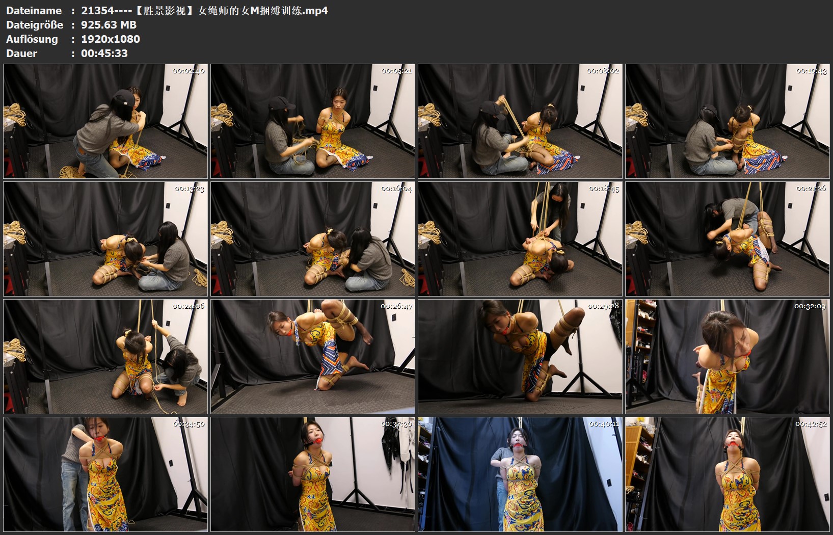女绳师将黑丝渔网女M捆绑训练,缚腿、吊缚、口球堵嘴
