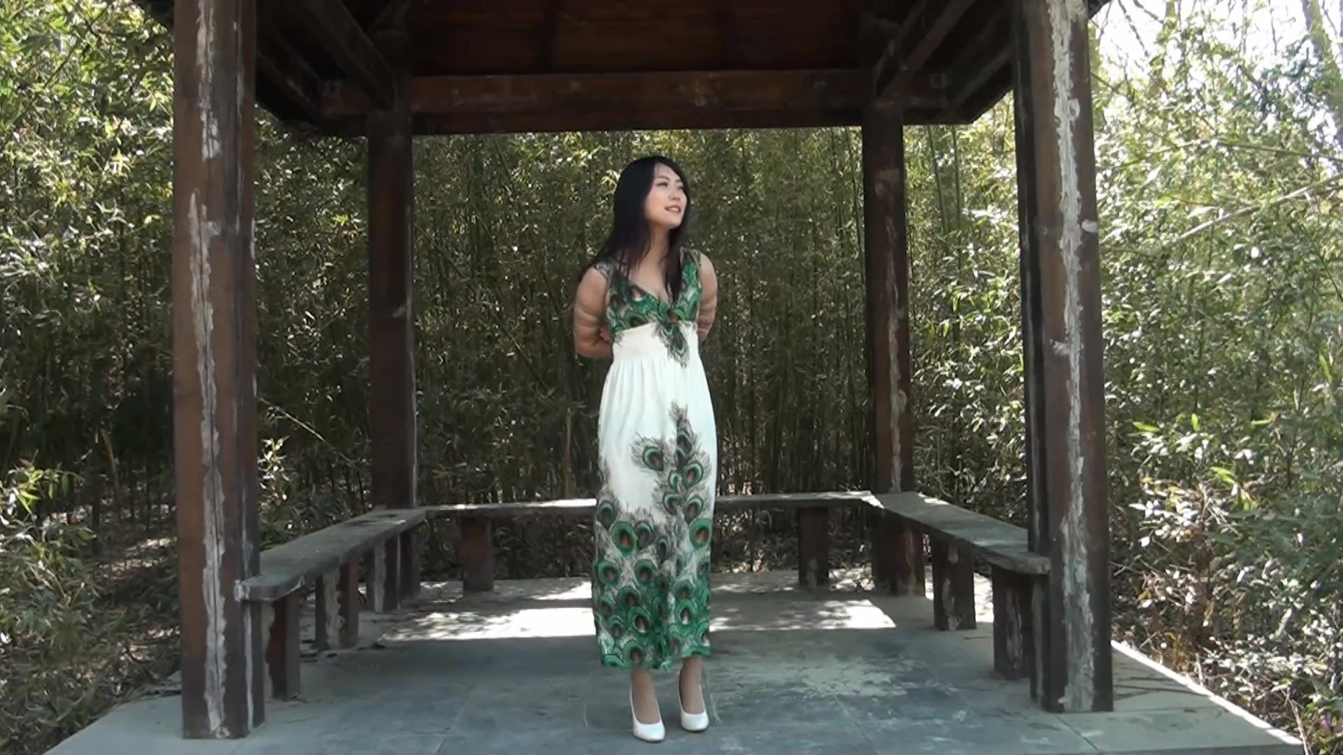 高挑美女的首部户外绳艺MV,在山林中的凉亭被五花捆绑展示绳艺,被捆绑着悠闲的走在林中小路中!