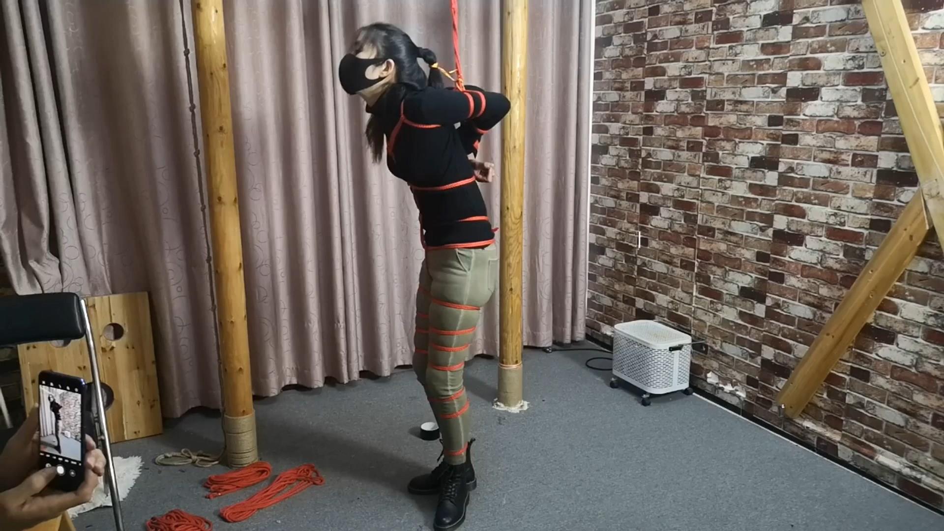 【束缘阁】文慧白衬衣皮裙 柱子全身固定