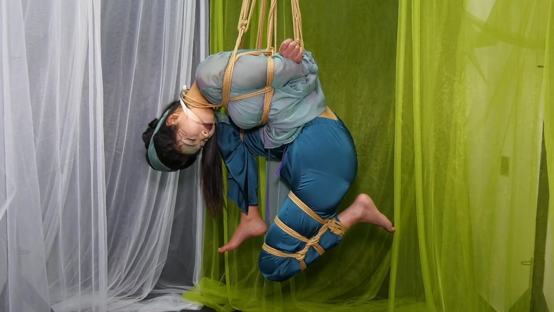 女绳师将抓捕到的青蛇全身紧缚悬吊挣扎禁锢