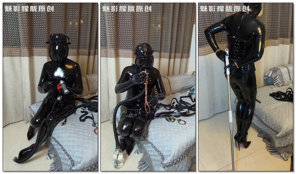 【魅影朦胧】胶衣自缚,防毒面具与呼吸瓶