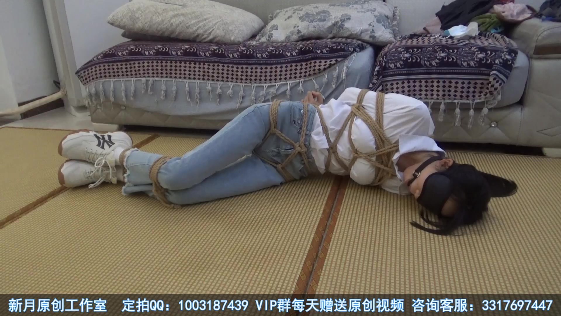 【新月原创】【红豆】牛仔裤 衬衫 白袜 牛仔裤 超紧缚 蒙眼封嘴挣扎 大长腿被玩弄