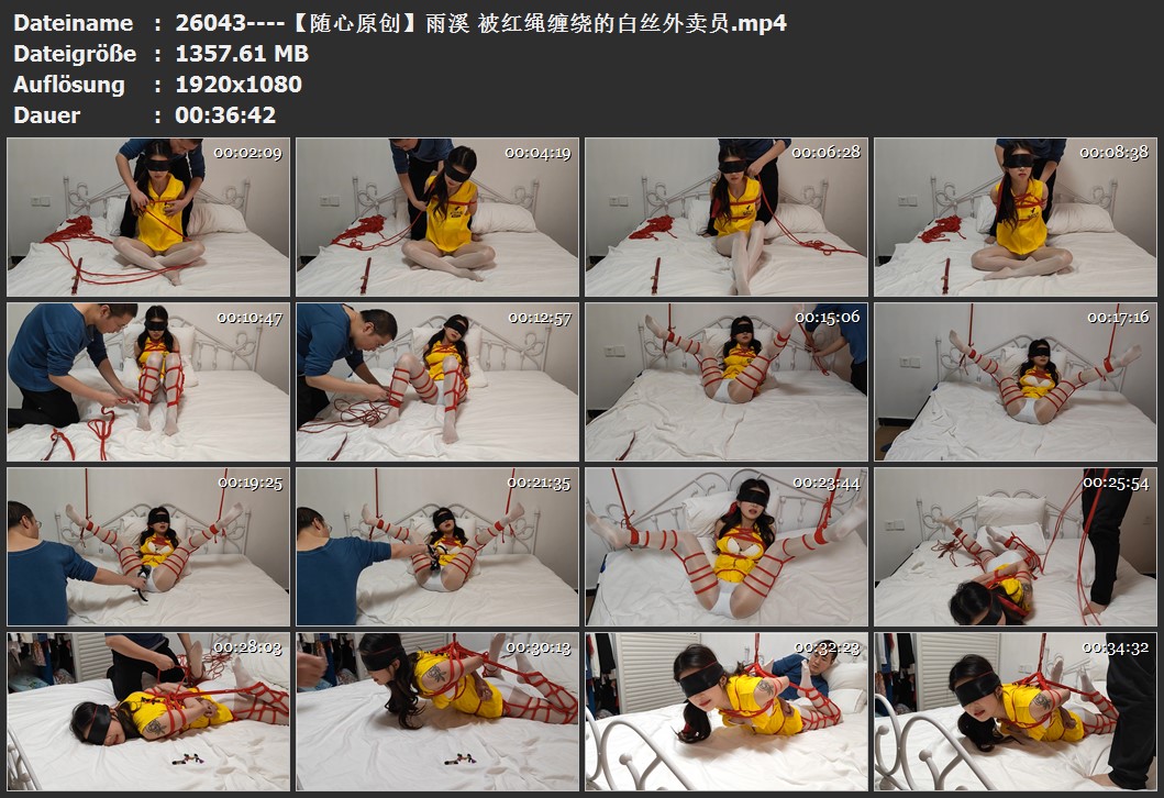 【随心原创】雨溪 被红绳缠绕的白丝外卖员 ...