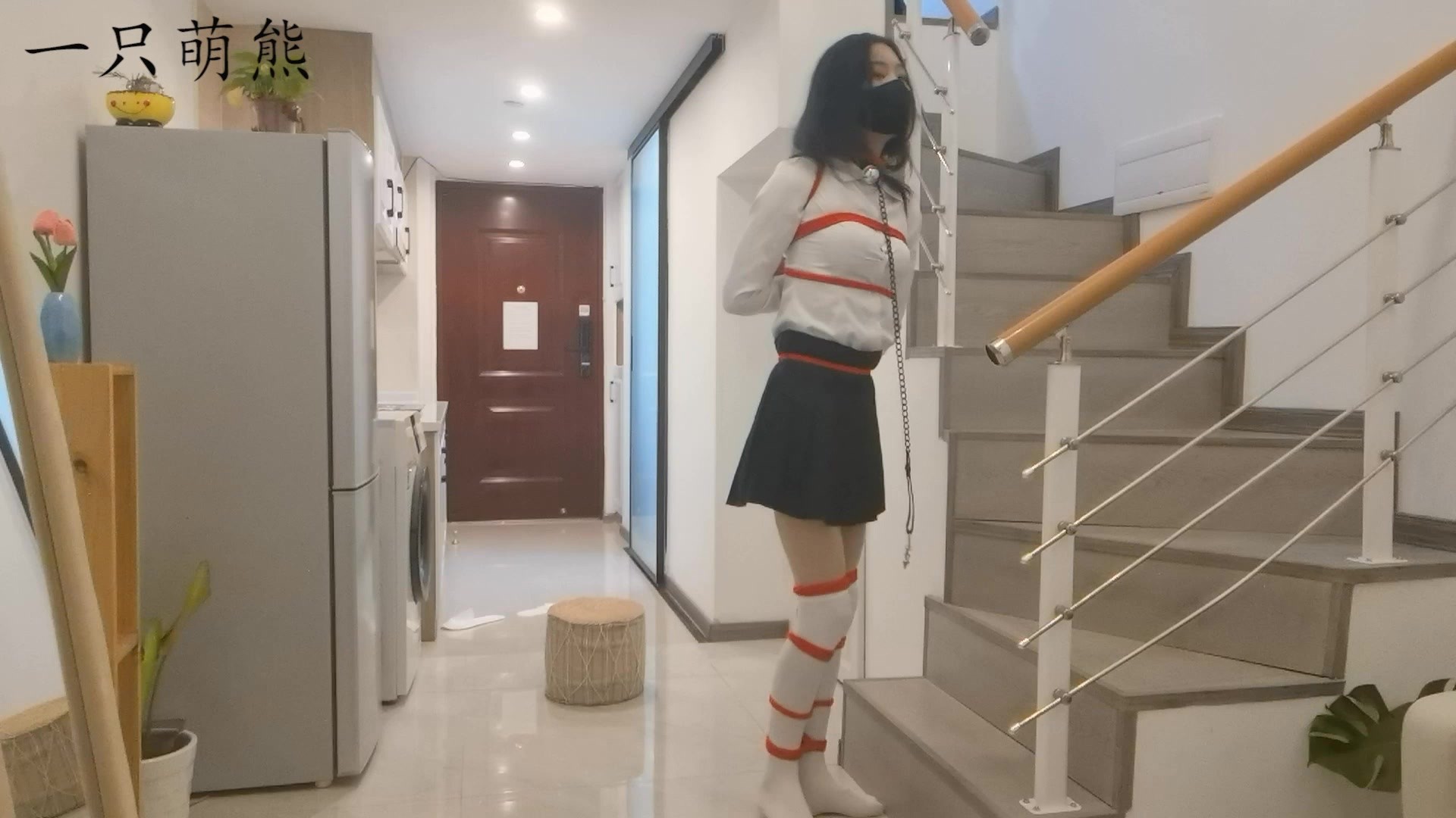【一只萌熊】自缚16cm高跟电击肛钩头套口球绑腿脚铐拿钥匙