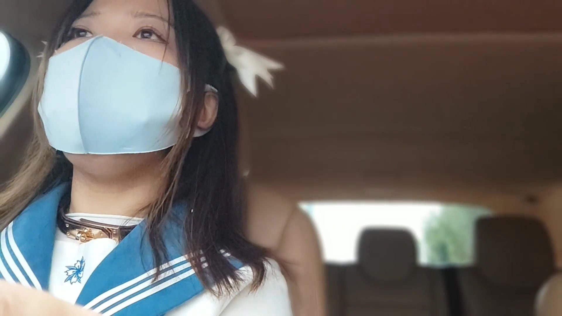 【凛凛蝶】海沙-全程自拍,连体白丝jk母狗带口球进店购物开车接主人