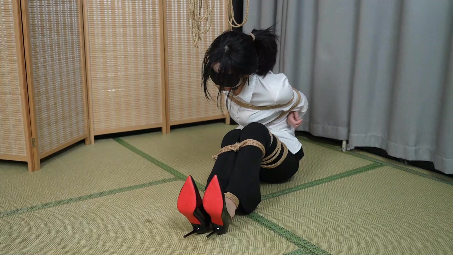 穿着红色高跟鞋的她不断的扭动着被绑着的双脚,肉丝玉足在绳子的衬托下显得那般格外美丽!此时她的上身穿着这白色衬衣的她正被歹徒绳索缠绕,双手被反绑在身后,使得她动弹不得。“呜呜呜呜 ~!(你要干嘛~!)”可怜的求救声也被唤作一阵阵呜咽,而她的双眸也被眼罩封闭的死死的,这不由得让她在地上绝望挣扎着.