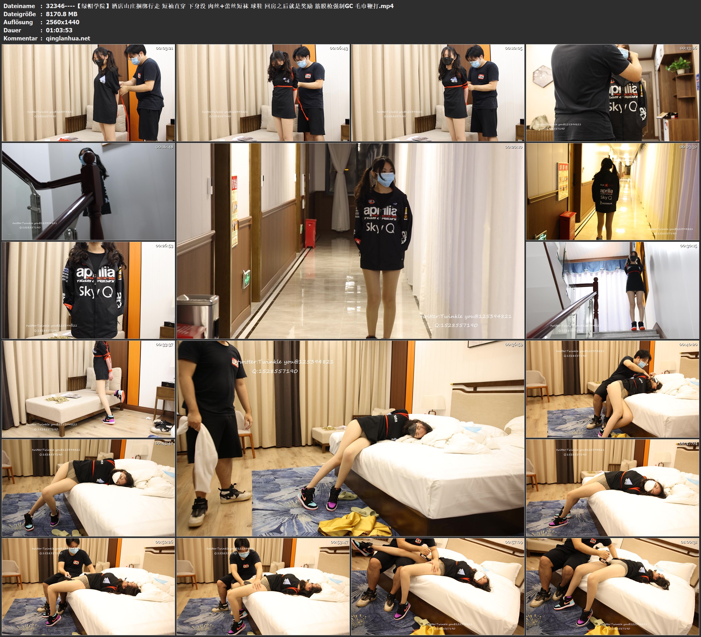 【绿帽学院】酒店山庄捆绑行走 短袖直穿 下身没 肉丝+蕾丝短袜 球鞋 回房之后就是奖励 筋膜枪强制GC 毛巾鞭打
