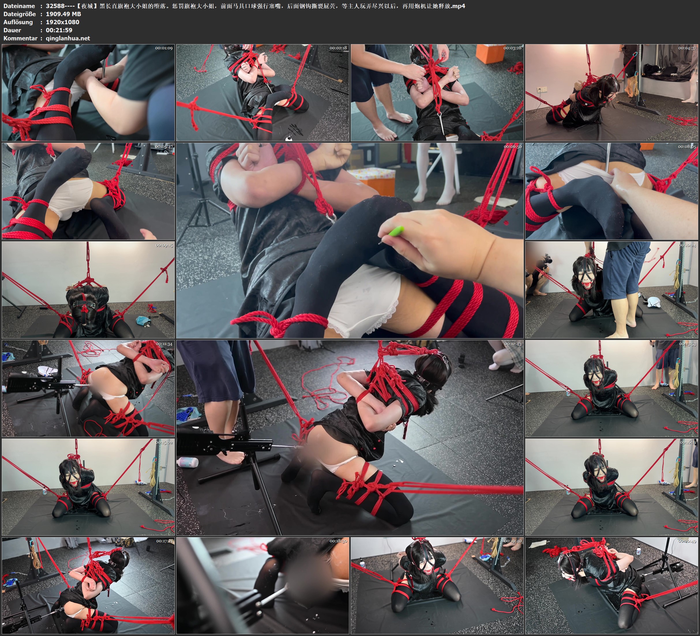 【夜城】黑长直旗袍大小姐的堕落。惩罚旗袍大小姐,前面马具口球强行塞嘴,后面钢钩撕裂屁茓,等主人玩弄尽兴以后,再用炮机让她释放