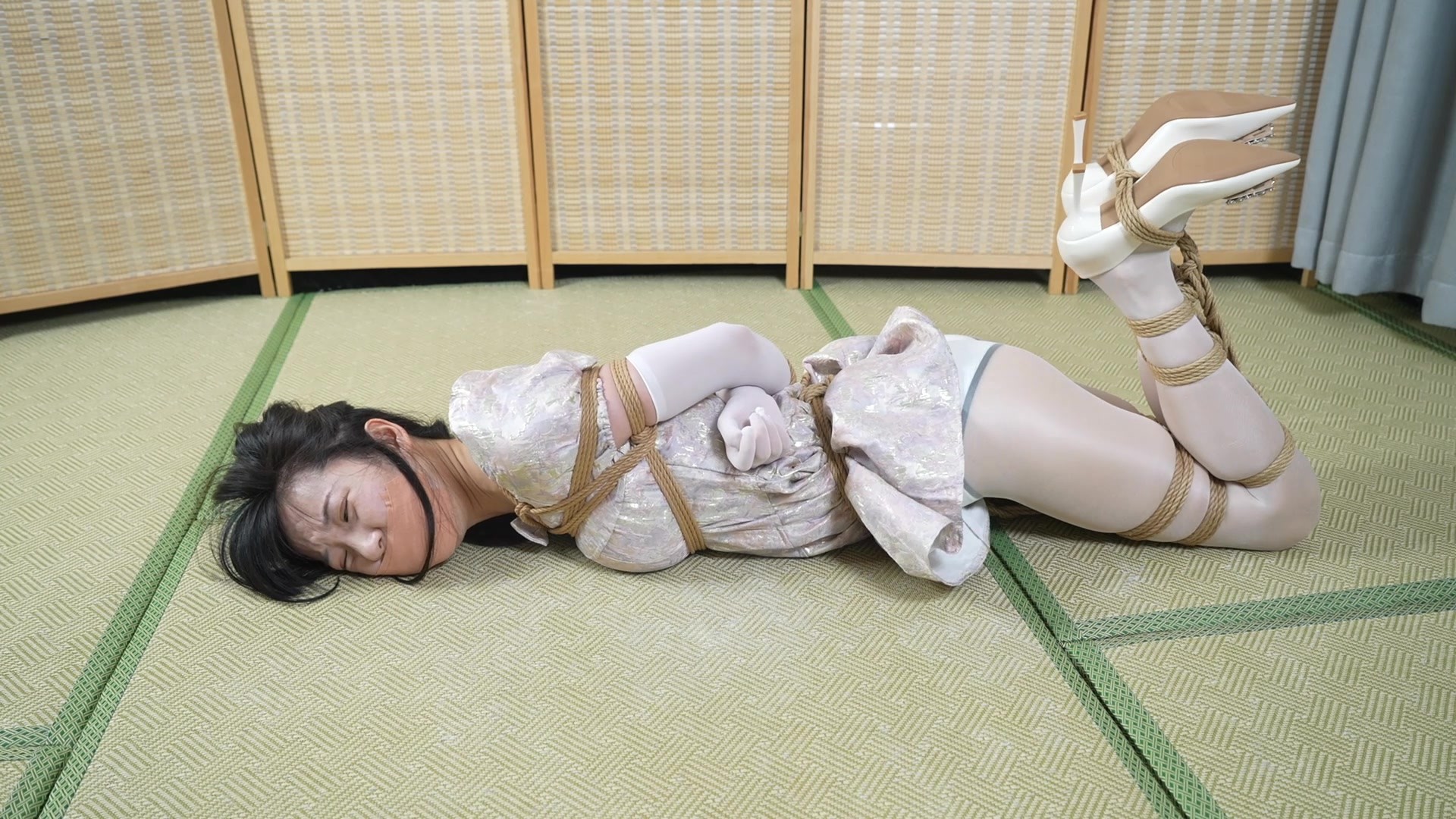 【象人工作室】嗷嗷-白色油亮丝袜+白丝手套,麻绳紧缚后的多层丝袜全包!