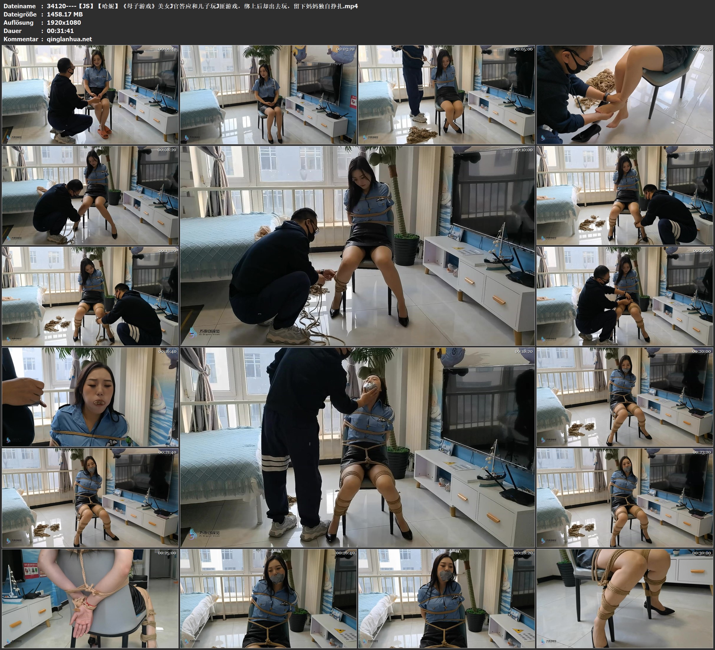 【JS】【哈妮】《母子游戏》美女J官答应和儿子玩J匪游戏,绑上后却出去玩,留下妈妈独自挣扎