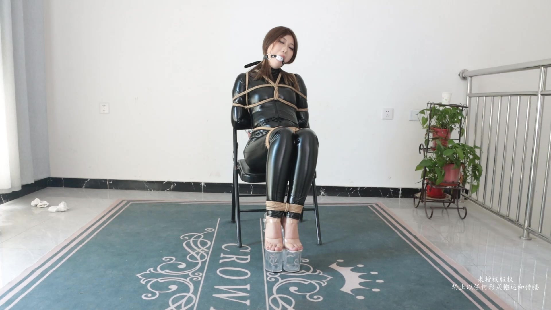 性感美女身穿皮衣脚踩透明恨天高化身美女搜查官,被捆绑口球堵嘴只能无助的呻吟流口水,还被换上多种胶带封嘴,挣扎反抗却无济于事,只能任由口水不断的流出,模特呻吟很不错,口水也很多