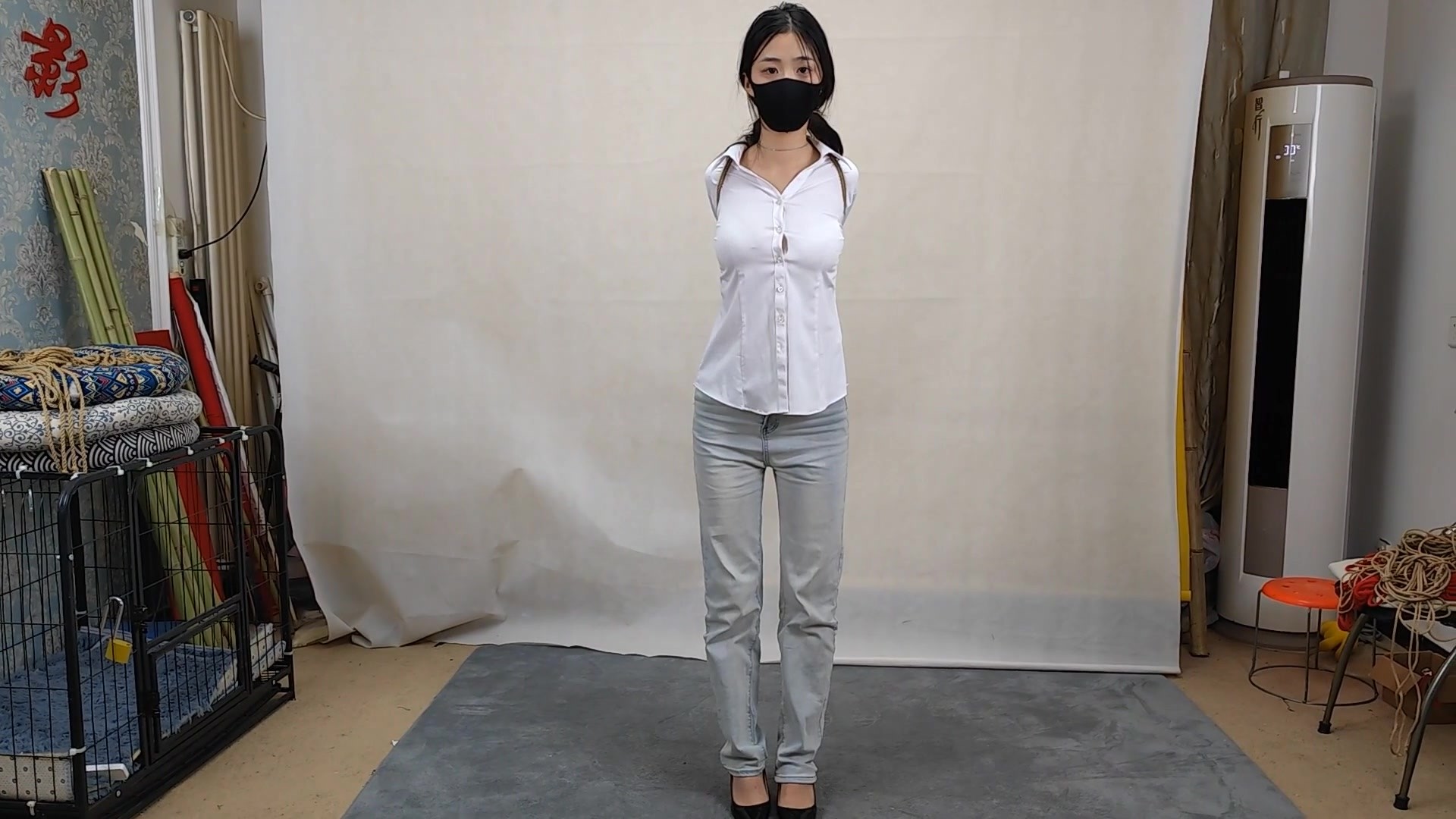 【束缘阁】白衬衣牛仔裤 紧缚的直臂