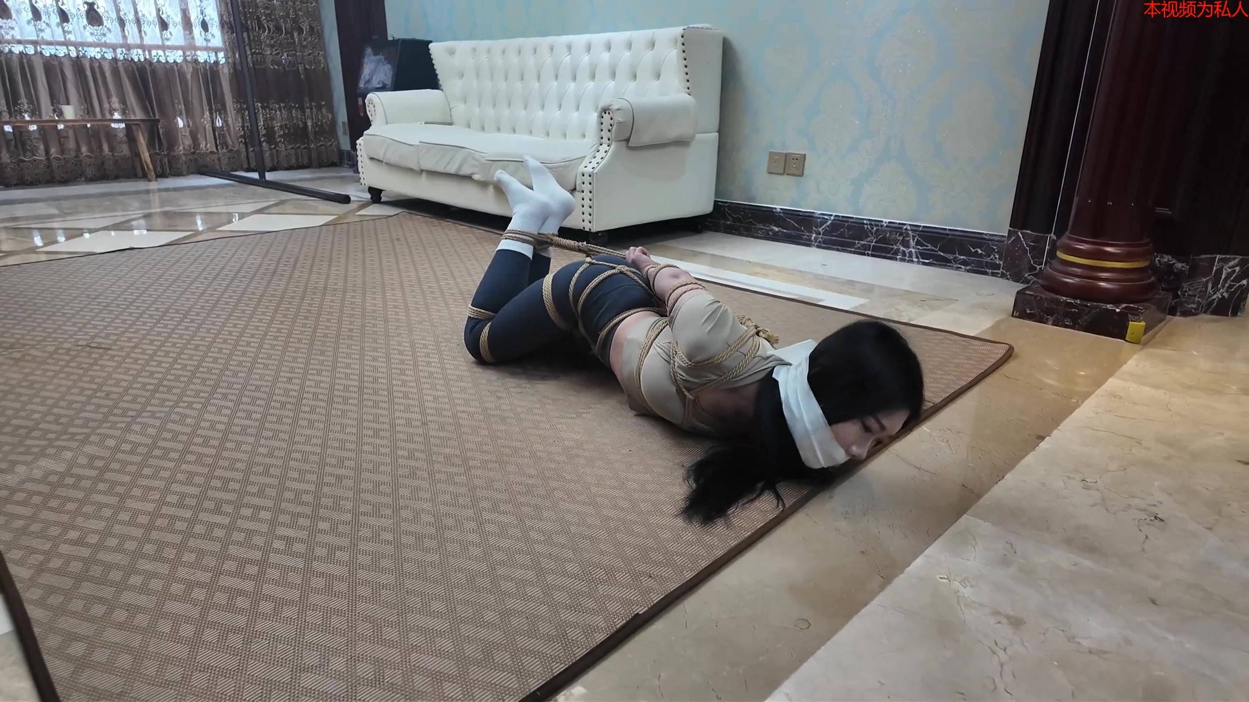 剧接上回,芷溪身着瑜伽服,瑜伽裤,白棉袜被直臂紧缚驷马倒攒蹄捆绑在房间中,嘴巴被严密封堵使她无法呼喊,驷马倒攒蹄使她只能扭动着身体朝门外逃跑,可这难于登天。门外的小偷取到了钱又叫来了一个绑匪同伙,想着从芷溪身上再捞一笔钱,二坏人进门,就看到挣扎的芷溪,于是将芷溪抬到了客厅,为了惩罚她的不老实对她进行拳打脚踢,威逼利诱,拍照侮辱。对芷溪一番折腾后,用到逼问出芷溪钱财的位置,并得知芷溪还有个有钱的姐姐,问到信息后,二人仍没有对芷溪怜香惜玉的意思,等待芷溪的是一个口球紧紧塞入芷溪的嘴里,接着再脑后紧紧扣住,芷溪吃疼却只能发出呜呜呜的声音。接着二人将芷溪挣扎录成视频,将视频发给芷溪姐姐,以此威胁芷溪姐姐(大雷)要赎金来救芷溪。可穷凶极恶的绑匪哪会只想拿赎金那么简单呢?二人商量一不做二不休,趁着交换赎金的机会,把大雷一起绑架了。一拍即合,二人给肉货芷溪换了套衣服,接着重新五花大绑手脚,然后为方便行动,二人将耳塞塞入芷溪耳朵里,然后用黑色胶带缠绕封住她的眼睛,再用白布蒙眼,这下芷溪就是听不见也看不见了,虽然二人一人摁住芷溪的头,一人用黑色头套把芷溪的头牢牢套上,把芷溪严严实实的进行了感官封闭,为了防止芷溪叫喊,二人又用红色口球堵塞了芷溪的口部,刚芷溪看不见,听不见,叫不了,动不了,成了一件人人随意摆布的肉货!二人将肉货(芷溪)抬上了MPV的后座,在车上也不能让芷溪放松一下,坏人脱了她的一只鞋子,用力挠她的脚心,听着芷溪被挠脚心而发出的呜呜呜呜呜声音好不享受。一会,到达交易地点,二人把芷溪关在后备箱,然后下车等候来交赎金的大雷,大雷来到了后提出了要先验货,于是二人打开后备箱,大雷看着车上五花大绑,黑头[X_X]头,红色口球堵嘴的少女,提出疑问:戴个黑头套,我怎么知道是不是我妹妹?绑匪说到:你自己上去把头套取下来就知道了。大雷上车取下了芷溪的黑头套,看到了就是自己的妹妹芷溪说了句:妹妹你受苦了。可一会,绑匪也上了后备箱并关上后备箱门,这下,大雷也一起受苦了。后备箱里,绑匪用到威逼大雷,让她不敢动弹,然后又用麻绳将她捆绑起来,捆绑结实后,用一只白色棉袜塞入大雷嘴里,然后用五张布基胶带将大雷嘴巴封上,这下大雷也是手脚不能动,嘴不能喊叫了。被控制并捆绑堵嘴后的二女成了两名猥琐绑匪的玩物,二绑匪玩弄二美女,挠脚心,挠腰,挠胸全都安排上了。二女也只能呜呜呜挣扎,玩累的二绑匪决定将二女运回关肉货的地方,于是发动车辆,出发。发车后,二女在后备箱挣扎并呜呜呜但也无济于事,只能等待命运的安排!