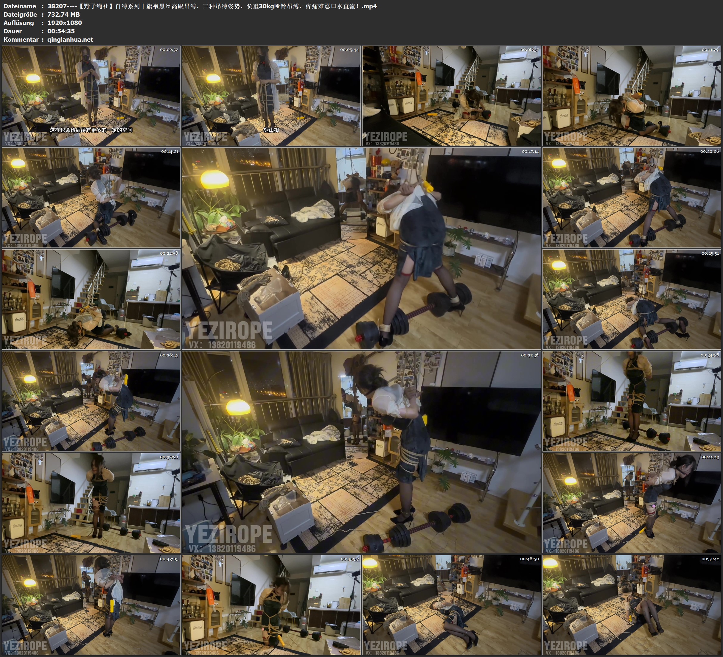 【野子绳社】自缚系列|旗袍黑丝高跟吊缚,三种吊缚,负重30kg哑铃吊缚,疼痛难忍口水直流!