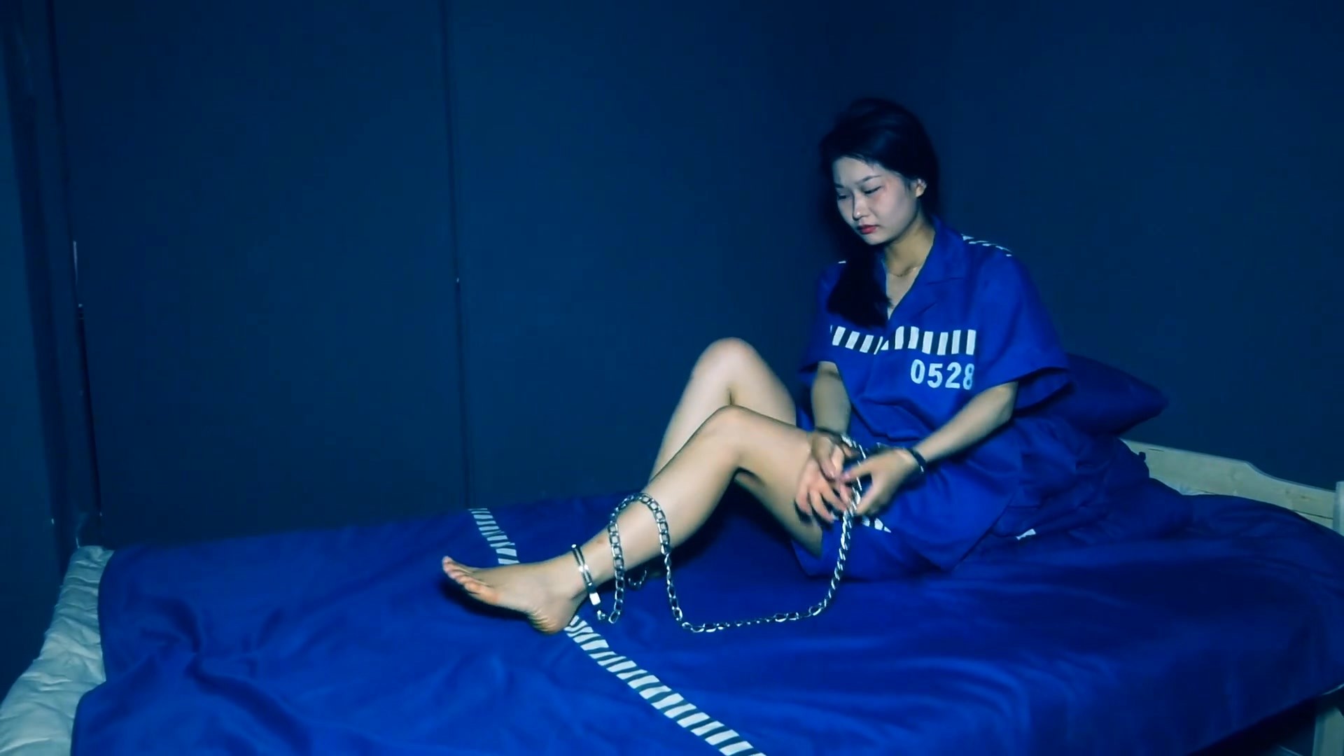 东南亚M国监狱,女囚朱丽娟因吸毒贩毒及偷渡被抓,被判无期,还要被鞭刑20鞭,最后被秘密关押她被颈手枷固定内戴上固定脚枷,嘴堵着一级禁锢在牢房,亲欣赏视频
